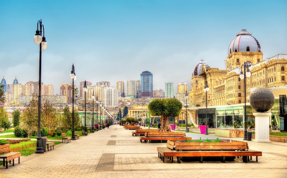 Zbiórka uczestników na lotnisku. Przelot do Baku – miasta położonego na zachodnim brzegu Morza Kaspijskiego.