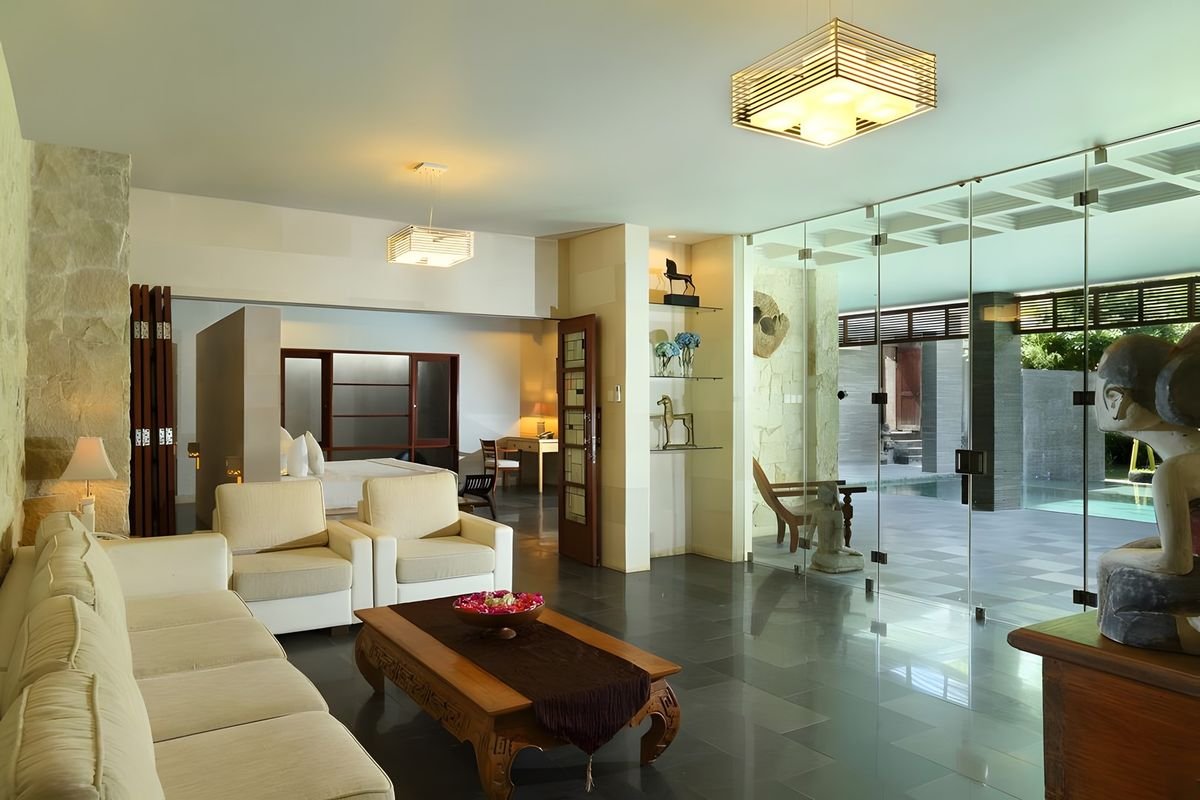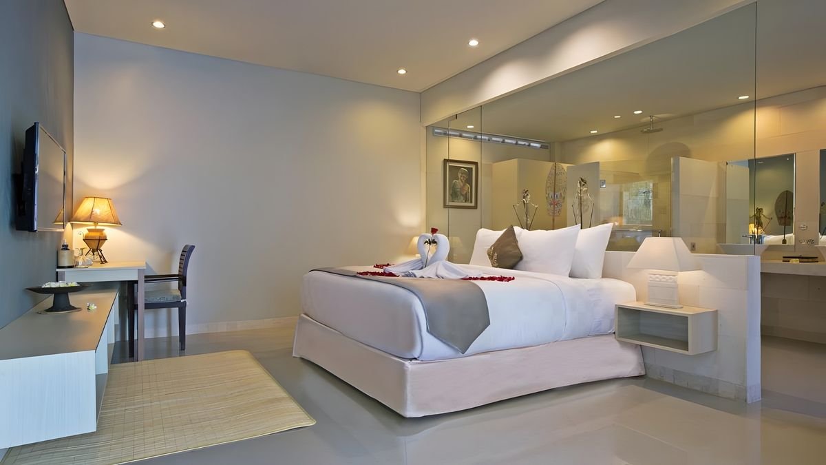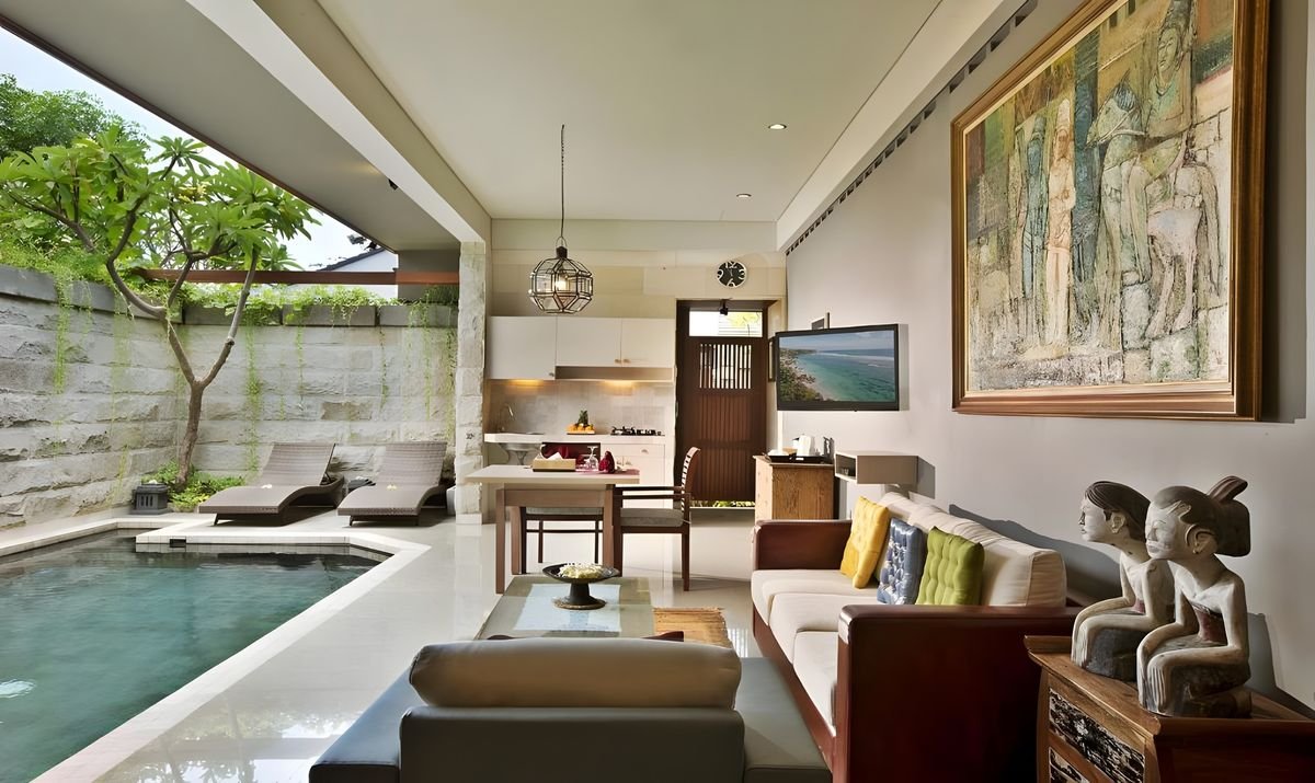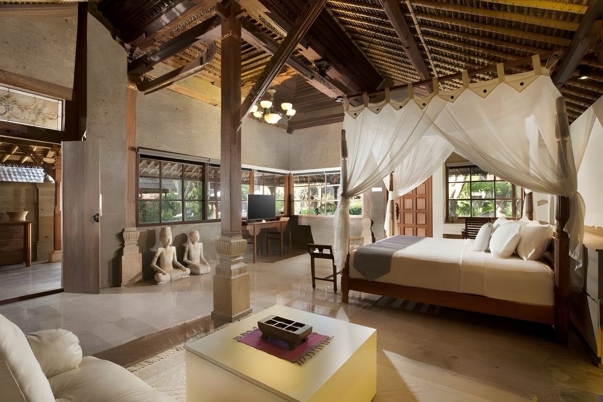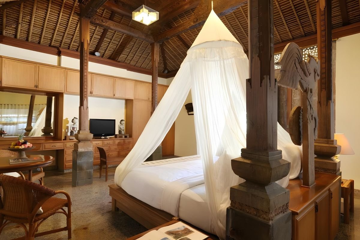 Zanurz się w autentycznym balijskim klimacie i zachwyć się tradycyjną architekturą w otoczeniu przepięknego ogrodu! Odpocznij w przestronnym, pięknie urządzonym pokoju lub w jednej z bogato wyposażonych willi, w tym z prywatnym basenem. Każda przestrzeń pełna jest dzieł sztuki nawiązujących do lokalnych tradycji, tworząc niepowtarzalną atmosferę, w której historia spotyka się z nowoczesnością. To miejsce, gdzie w pełni doświadczysz ducha Indonezji!