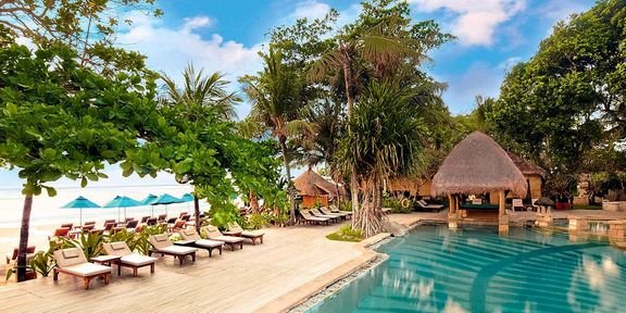 Wyjątkowa balijska architektura, klimatyczny wystrój wnętrz, orientalna atmosfera i piaszczysta plaża – na miejscu wszystko czego potrzeba do wymarzonych wakacji na Bali! Położony w turystycznej dzielnicy, przy plaży z jasnym piaskiem i bezpłatnym serwisem oferuje wygodne i nowocześnie wyposażone pokoje. Do dyspozycji Gości są dwa baseny, trzy restauracje i bary, w ciągu dnia organizowane są animacje sportowe, a wieczorami pokazy artystyczne. Na miejscu można skorzystać z kortu tenisowego, jest również sala fitness i boisko do siatkówki. Świetnym miejscem na relaks jest restauracja na plaży, której specjalnością są potrawy przygotowywane na gorących kamieniach.