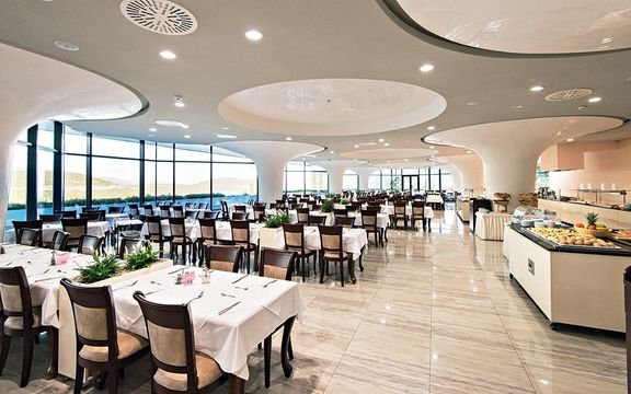śniadanie (7.00-10.00), obiad (12.00-14.00), kolacja (19.00-21.00) w formie bufetu w restauracji głównej; podwieczorek w wyznaczonym barze (16.00-17.00); wybrane napoje bezalkoholowe i lokalne napoje alkoholowe w barze w lobby (10.00-23.00).