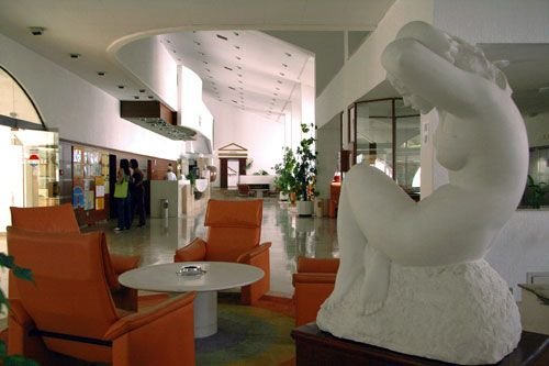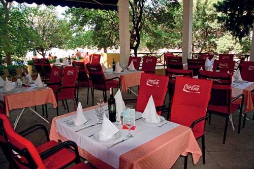 trzygwiazdkowy, zbudowany w latach 70-tych, sezonowo odnawiany, 167 pokoi, kilka budynków, 2-4 piętra, 2 windy, przestronne lobby, całodobowa recepcja, restauracja - dania w formie bufetu, obsługa kelnerska, kuchnia lokalna i międzynarodowa, dostępne foteliki dla dzieci, dania wegetariańskie; bar w budynku głównym, bar przy plaży, taras z widokiem na morze, sklepik ze słodyczami, sala konferencyjna dla 300 osób, ogród, parking; za opłatą: punkt internetowy i internet bezprzewodowy (ok. 10 EUR/godz.), garaż; akceptowane karty kredytowe: Visa, MasterCard, American Express.