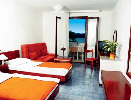 standardowy: 2-os. (możliwość 1 dostawki dla dziecka), ok. 20 m², zadbany, łazienka (wanna lub prysznic, wc), telewizja satelitarna, telefon; bezpłatne łóżeczko dla dziecka do 2 lat na zamówienie przed przyjazdem; pokoje z balkonem i widok na morze na zamówienie, za dopłatą.