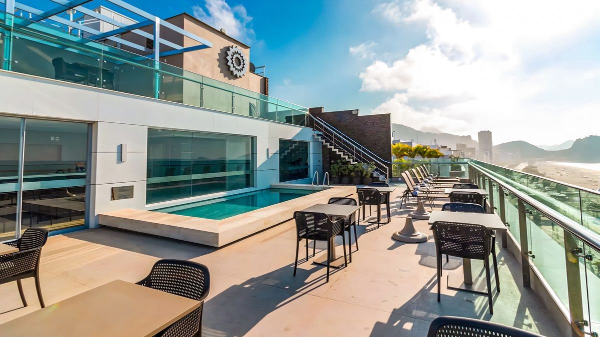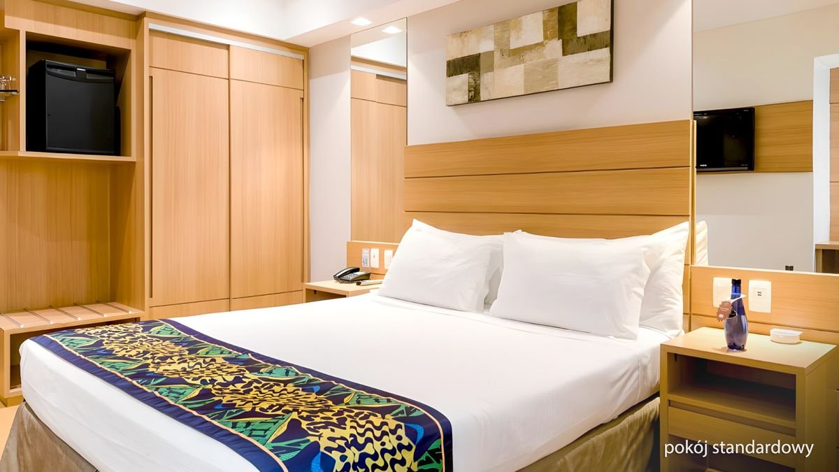 Spędź niezapominany urlop w Rio – najbardziej roztańczonym mieście w Brazylii! Hotel położony jest tuż przy słynnej, długiej na ponad 3 km plaży Copacabana i w otoczeniu licznych knajpek, sklepów oraz wakacyjnych atrakcji. Nowoczesna, przeszklona fasada i minimalistyczny wystrój wnętrz wyróżniają się elegancją zgodną z najnowszymi trendami, a doskonale przeszkolona i zawsze uśmiechnięta obsługa jest szczególnie ceniona przez bywalców. Do dyspozycji Gości przygotowano stylową restaurację serwującą kuchnię międzynarodową, wygodne i funkcjonalnie urządzone pokoje, siłownię oraz bar i basen zlokalizowane na dachu hotelu, skąd rozpościera się niesamowita panorama na rozświetlone miasto, olbrzymią plażę i bezkresny Atlantyk. Blisko stąd do najważniejszych atrakcji Rio m.in. Fortu Coapcabana i Głowy Cukru, a dotarcie do nieco odleglejszych miejsc, takich jak góra Corcovado z Pomnikiem Chrystusa Zbawiciela na szczycie, nie będzie problemem dzięki pobliskiemu przystankowi komunikacji miejskiej.