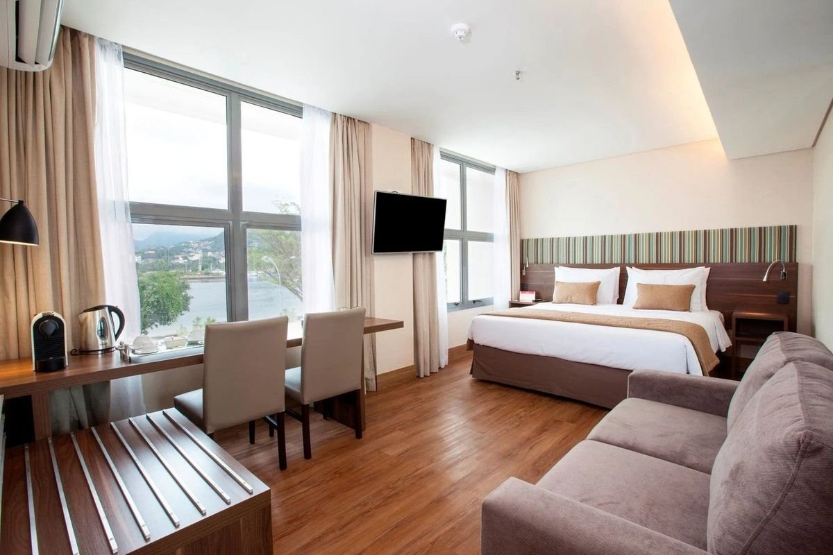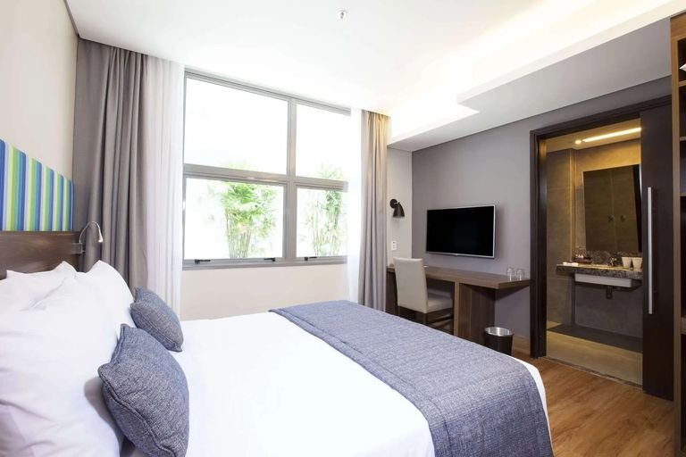 Czas na coś niesamowitego! Wspaniała baza wypadowa do zwiedzania Rio, wypełnionego fantastycznymi smakami i dźwiękami gorącej samby! To, co z pewnością przykuje Twój wzrok, to nieziemskie widoki na górę Corcovado, Głowę Cukru i zatokę Guanabara, które możesz podziwiać z... hotelowej restauracji i basenu na dachu. Nowoczesny, z dobrym serwisem, jest strzałem w dziesiątkę przy planowaniu Twojej niezapomnianej podróży do tętniącego życiem serca Brazylii.