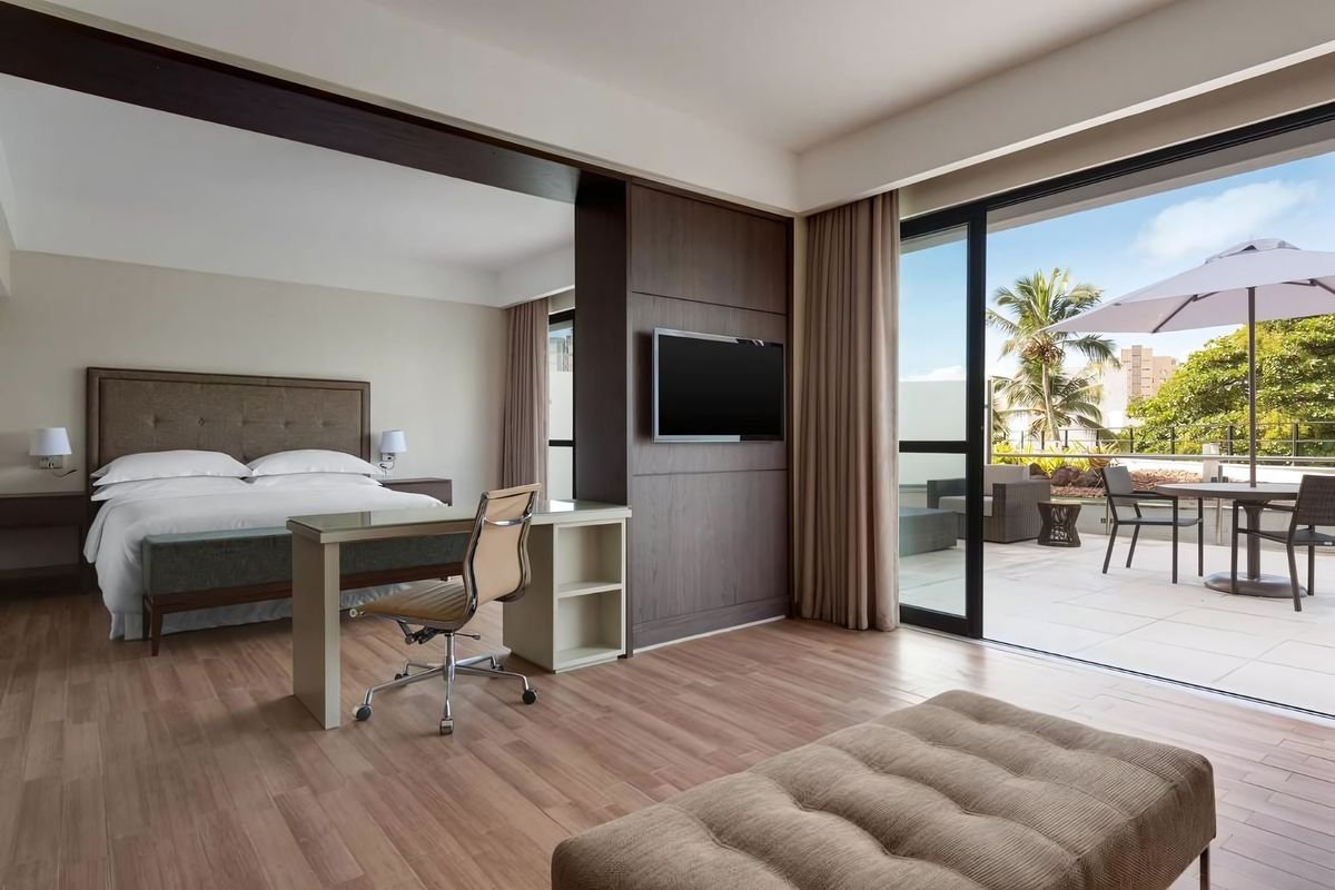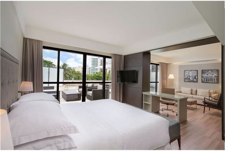 Wyjątkowe miasto we wschodniej Brazylii to świetny pomysł na wakacje! Pełne słońca dni spędzone na leżaku z ulubioną książką w dłoni lub w orzeźwiającym basenie, restauracja, w której posmakujesz smacznej, brazylijskiej kuchni oraz znakomitej jakości obsługa – brzmi kusząco? Wybierz ten hotel i zaplanuj pełen atrakcji i zwiedzania urlop w Salvadorze oraz przekonaj się, ile to pełne historii miasto ma do zaoferowania. Na miejscu czekają na Ciebie przestronne i przytulne pokoje, które są zaprojektowane z myślą o Twoim komforcie oraz galeria sztuki z ponad 350 dziełami, w tym panelami Carybé i muralem Genaro de Carvalho.