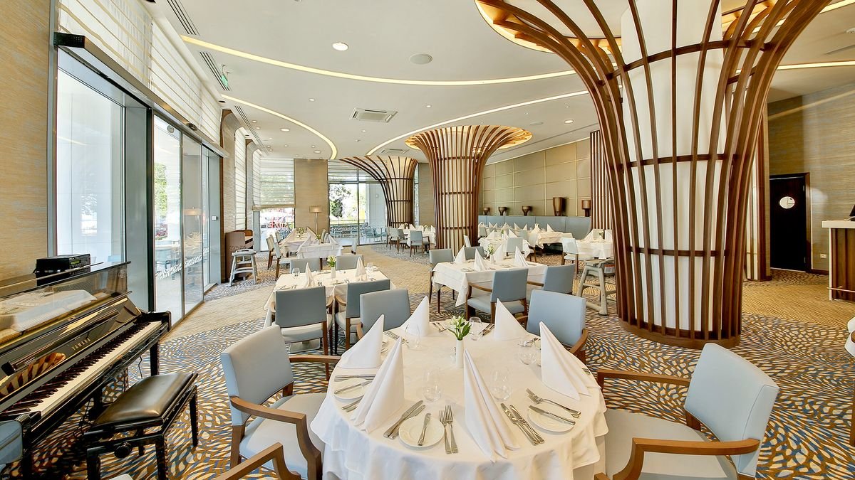 pięciogwiazdkowy, elegancki i nowoczesny, zbudowany w 2017 r., 238 pokoi, 1 budynek, 8 pięter, 6 wind, eleganckie lobby, całodobowa recepcja, restauracja główna Blue Essentials – dania w formie bufetu, dostępne foteliki i menu dla dzieci, Montgolfier – à la carte, dostępne foteliki dla dzieci, bar w lobby, bar przy basenie; kantor, centrum kongresowe dla 500 osób, bezpłatny internet bezprzewodowy; za opłatą: fryzjer; udogodnienia dla niepełnosprawnych; akceptowane karty kredytowe: Visa, MasterCard.