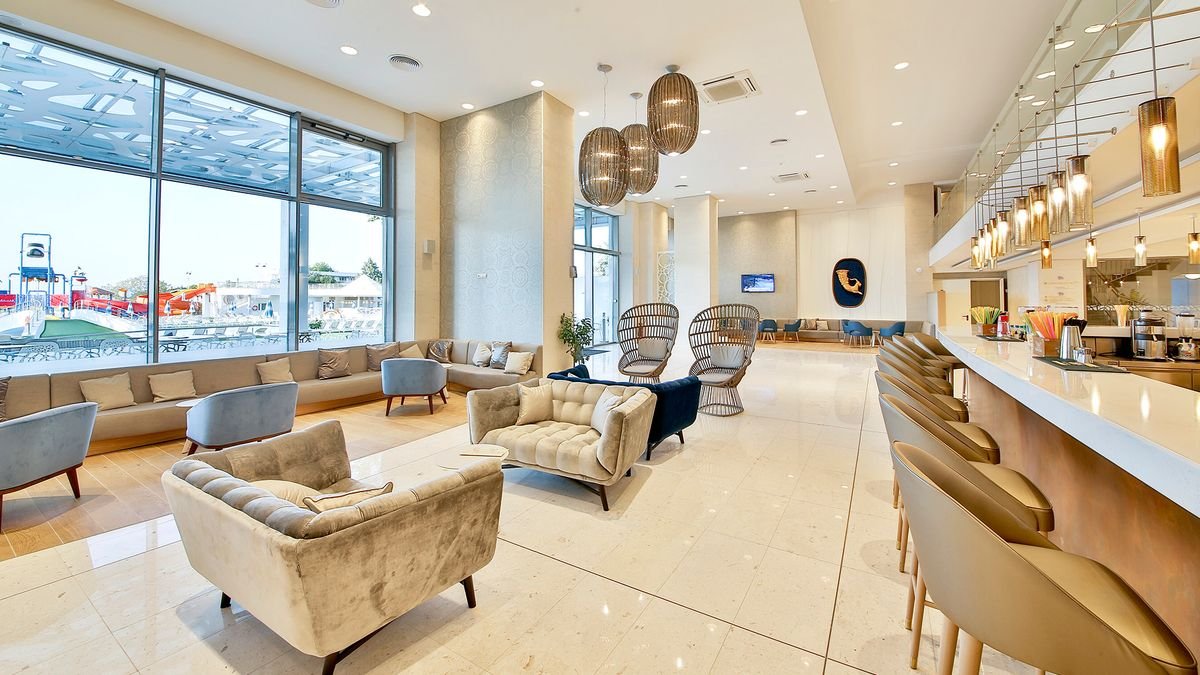 Rewelacyjnie położony przy złocistej plaży, łagodnie opadającej do morza z czystą i przejrzystą wodą. Ten nowoczesny i elegancki hotel zadowoli nawet najbardziej wymagających Gości. Do ich dyspozycji są elegancko urządzone, komfortowe, wyposażone we wszystkie wygody pokoje. Na miejscu jest kilka basenów, w tym kryty oraz basen ze zjeżdżalniami, a także mnóstwo atrakcji dla rodzin z dziećmi, m.in. miniklub, plac zabaw i animacje, które sprawią frajdę zarówno dzieciakom, jak i dorosłym. Doskonałe miejsce na rodzinne wakacje!