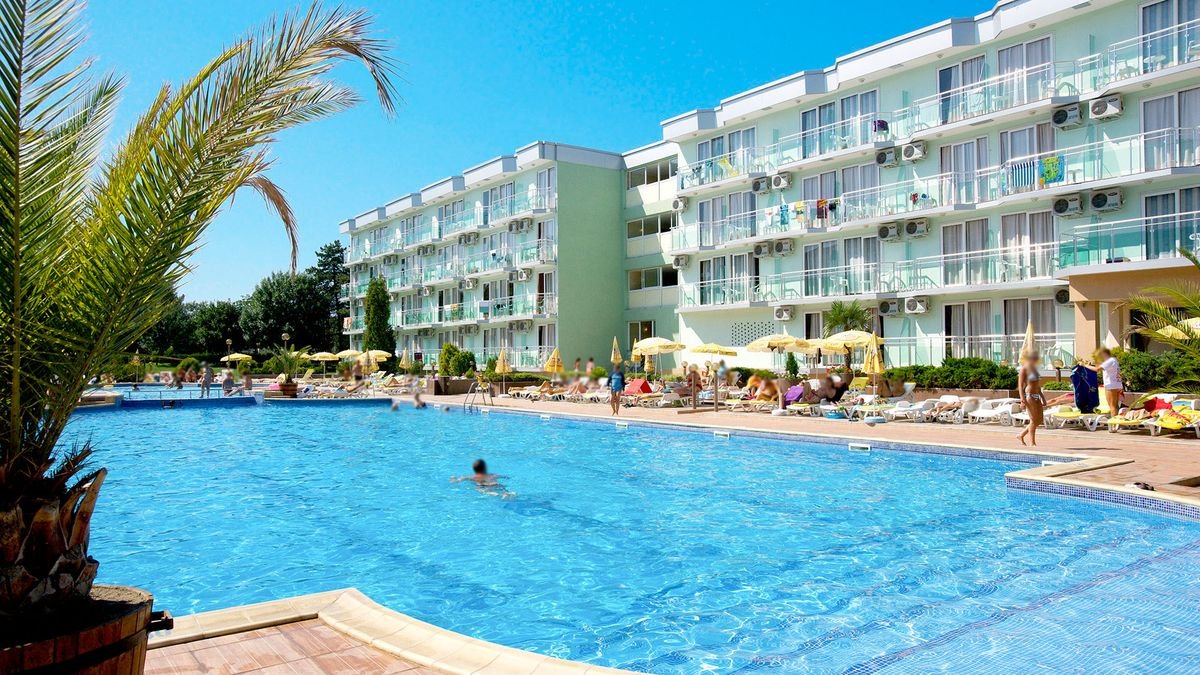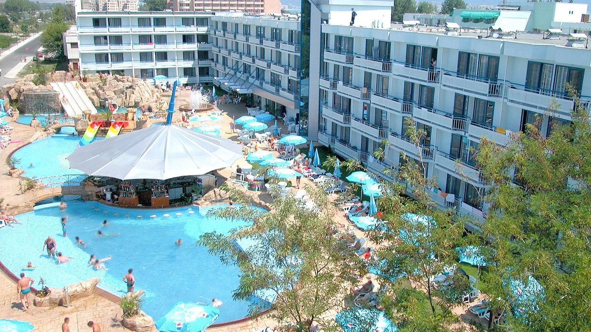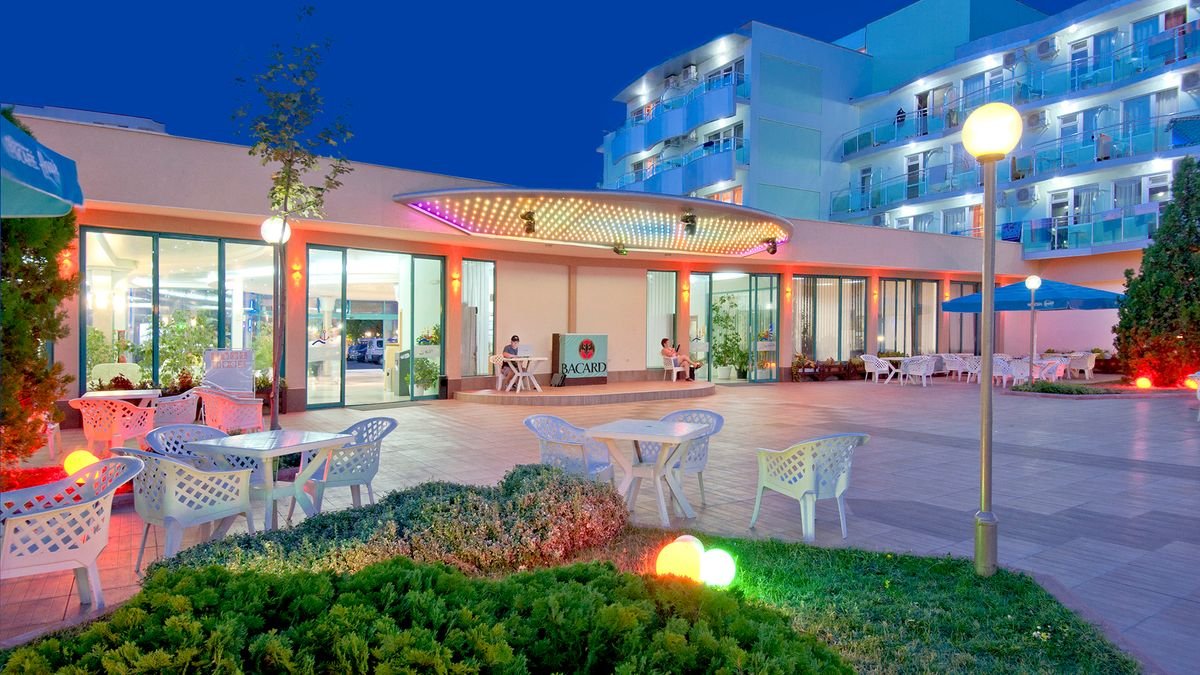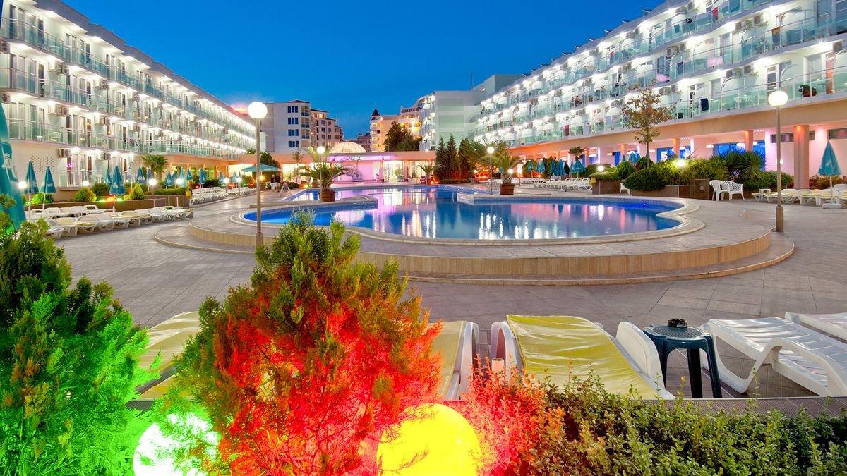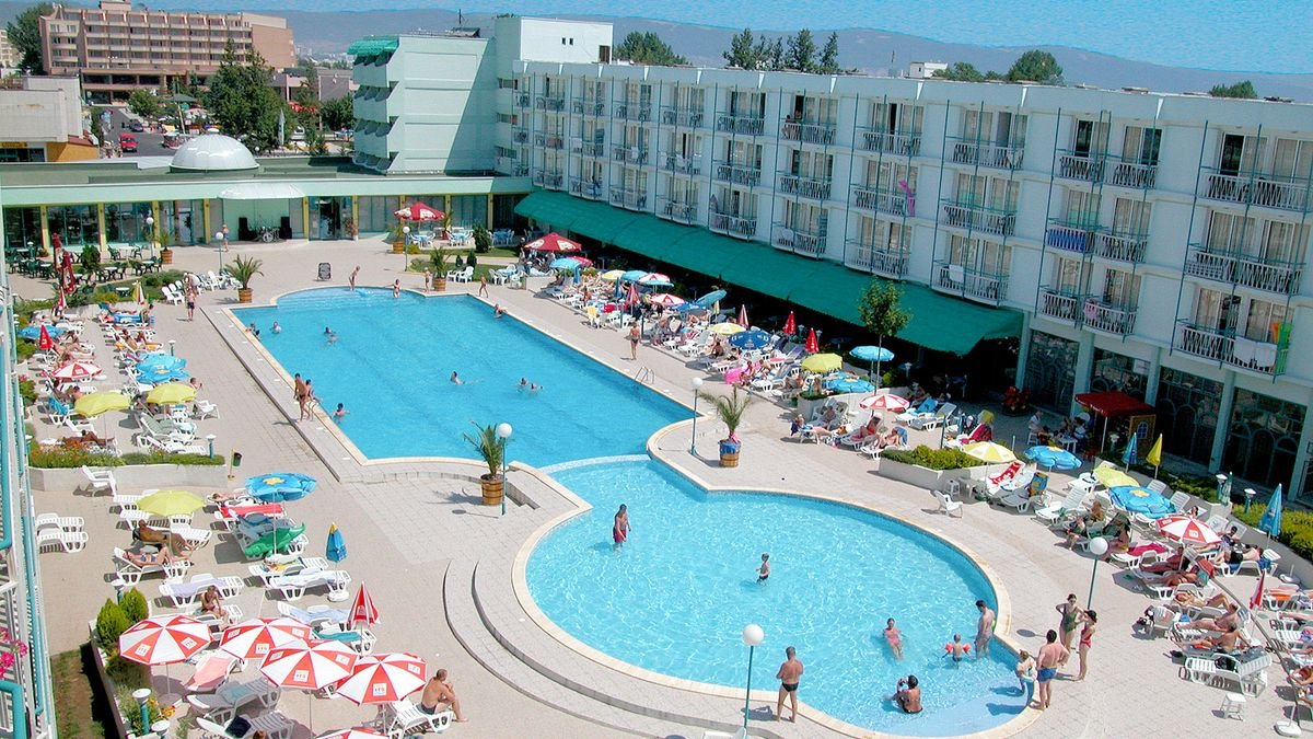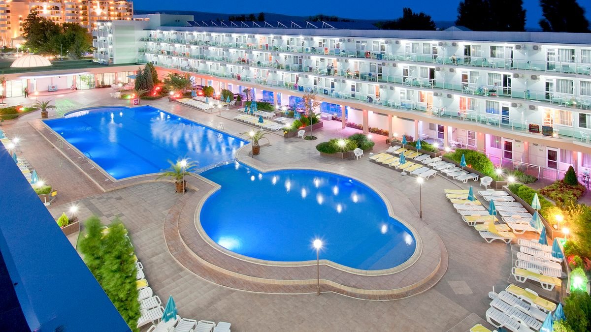 czterogwiazdkowy, wybudowany w 1975 r., odnowiony w 2015 r., 471 pokoi, 2 budynki, 3 piętra, 3 windy, lobby, całodobowa recepcja, restauracja główna – dania w formie bufetu, kuchnia międzynarodowa, dostępne foteliki dla dzieci, bar w lobby, bar przy basenie, bar swim-up w aquaparku Caribbean Pirates (płatny); kantor, sklepy (art. spożywcze, pamiątki, akcesoria plażowe); sala konferencyjna dla 140 osób, taras z widokiem na baseny; bezpłatny internet bezprzewodowy w lobby; za opłatą: sejf w recepcji (5 BGN/dzień), room-service; akceptowane karty kredytowe: Visa, MasterCard.