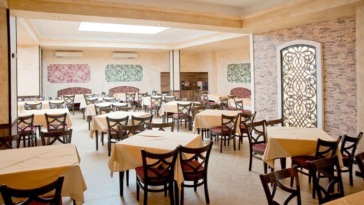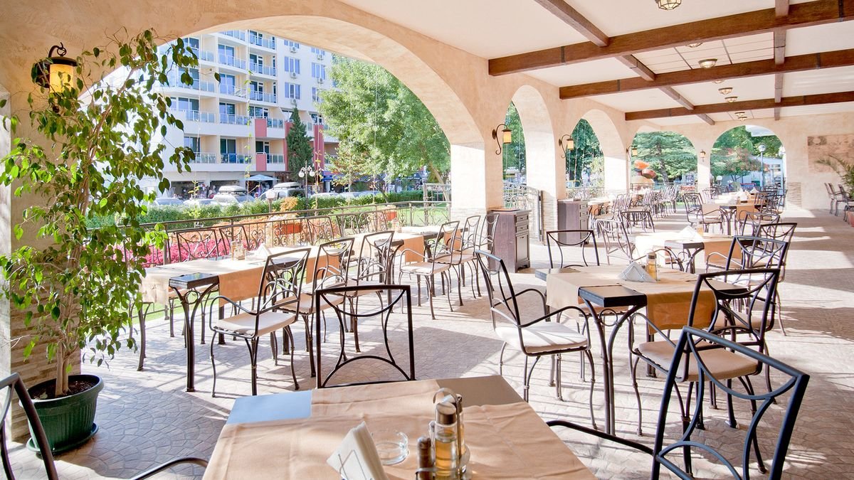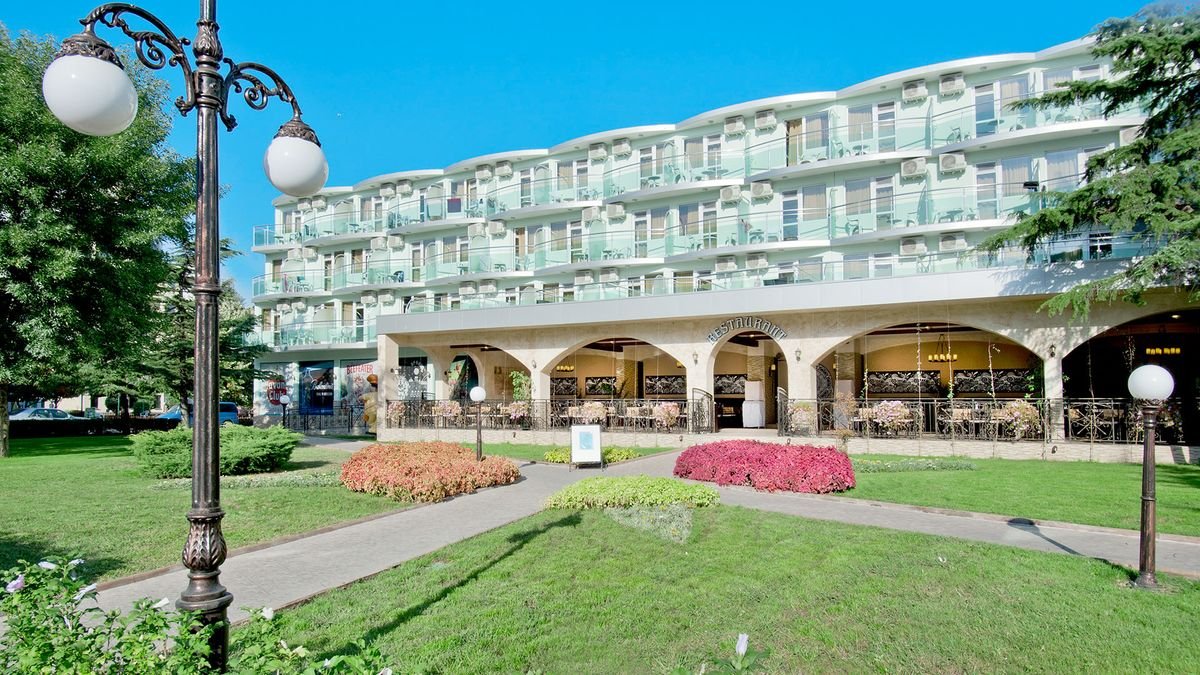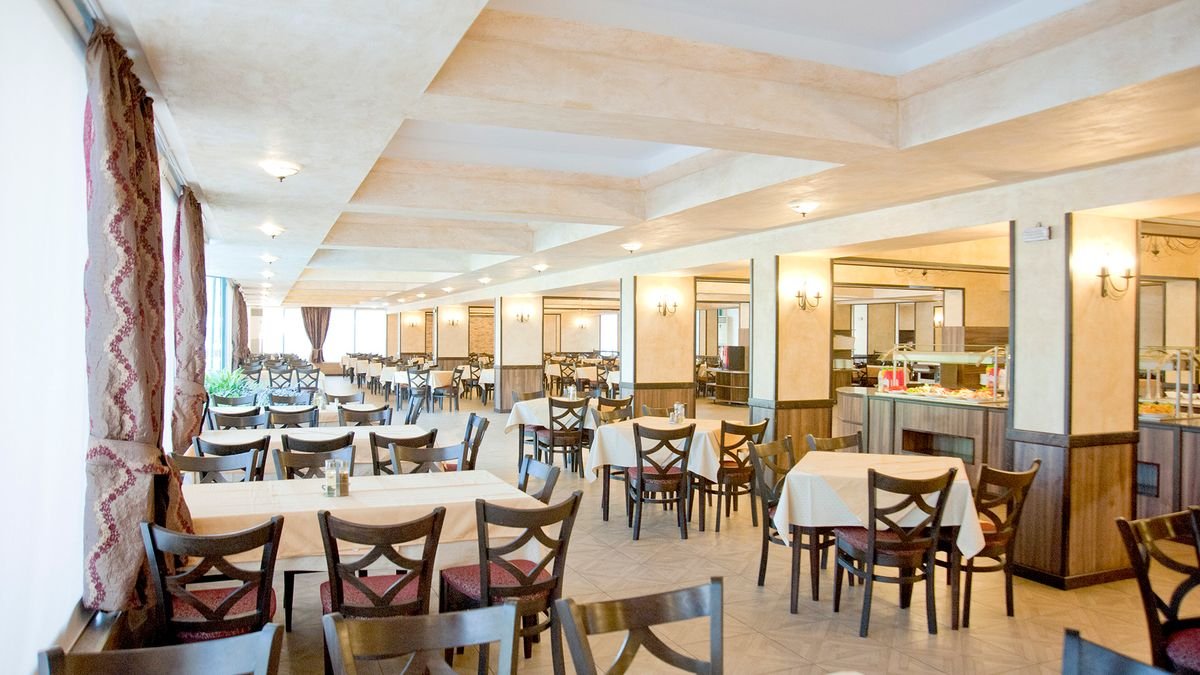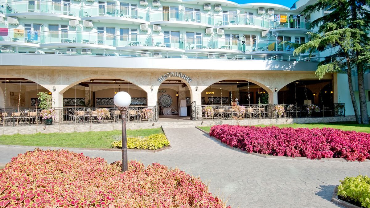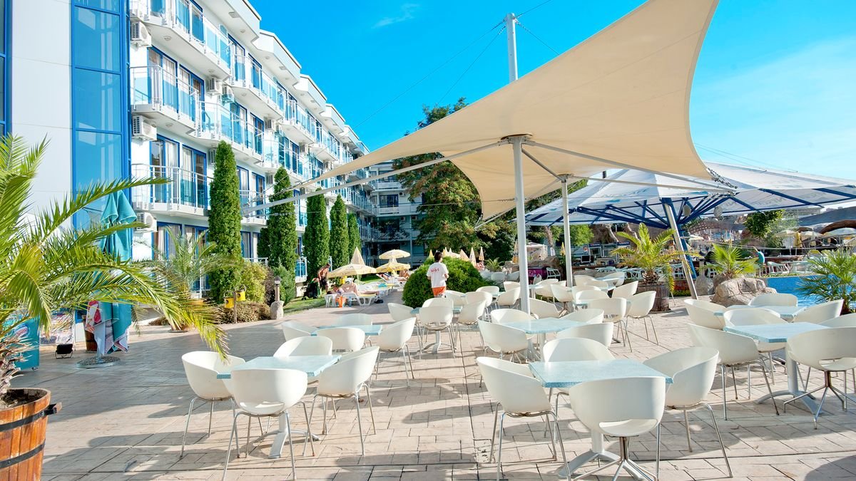 czterogwiazdkowy, wybudowany w 1975 r., odnowiony w 2015 r., 471 pokoi, 2 budynki, 3 piętra, 3 windy, lobby, całodobowa recepcja, restauracja główna – dania w formie bufetu, kuchnia międzynarodowa, dostępne foteliki dla dzieci, bar w lobby, bar przy basenie, bar swim-up w aquaparku Caribbean Pirates (płatny); kantor, sklepy (art. spożywcze, pamiątki, akcesoria plażowe); sala konferencyjna dla 140 osób, taras z widokiem na baseny; bezpłatny internet bezprzewodowy w lobby; za opłatą: sejf w recepcji (5 BGN/dzień), room-service; akceptowane karty kredytowe: Visa, MasterCard.