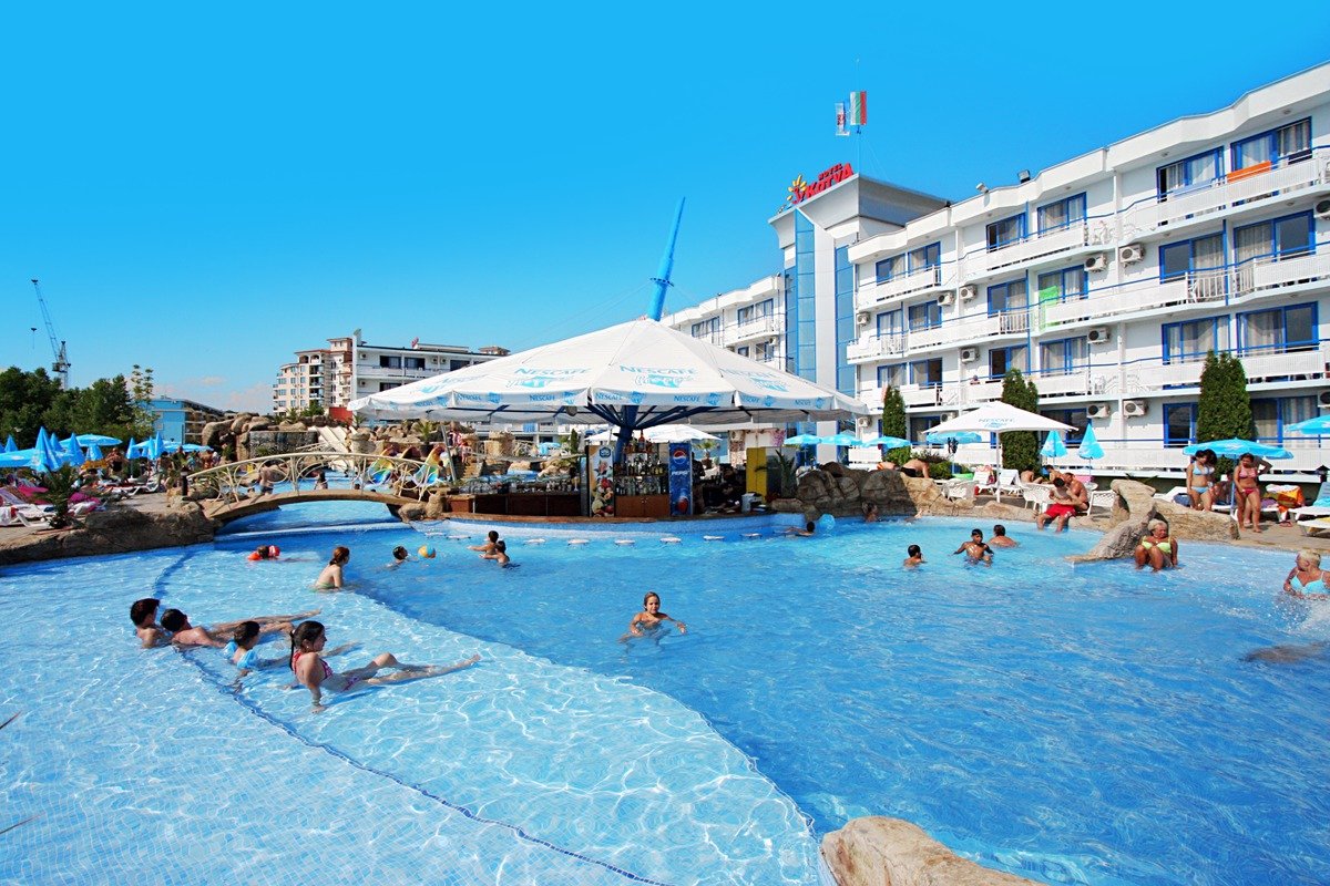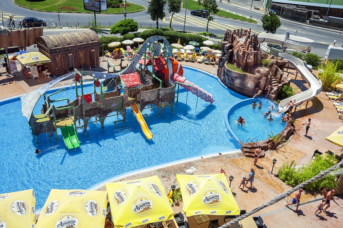 Doskonały na rodzinne wodne szaleństwa – aż 3 baseny, których łączna powierzchni to ponad 1000 m²! Goście mogą bezpłatnie korzystać z 2 miniaquaparków ze zjeżdżalniami, które znajdują się na terenie hotelu. Blisko hotelu znajduje się piaszczysta, rozległa plaża. Warto również wybrać się na zwiedzanie starożytnego Nesebaru, położonego w odległości spaceru.