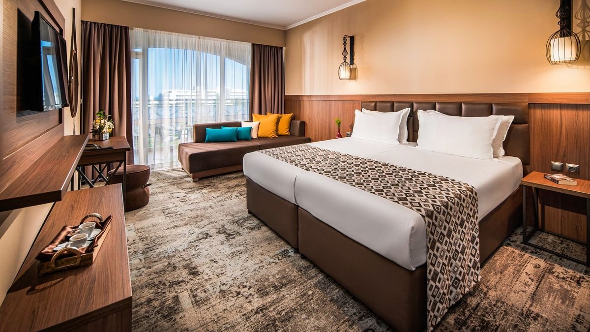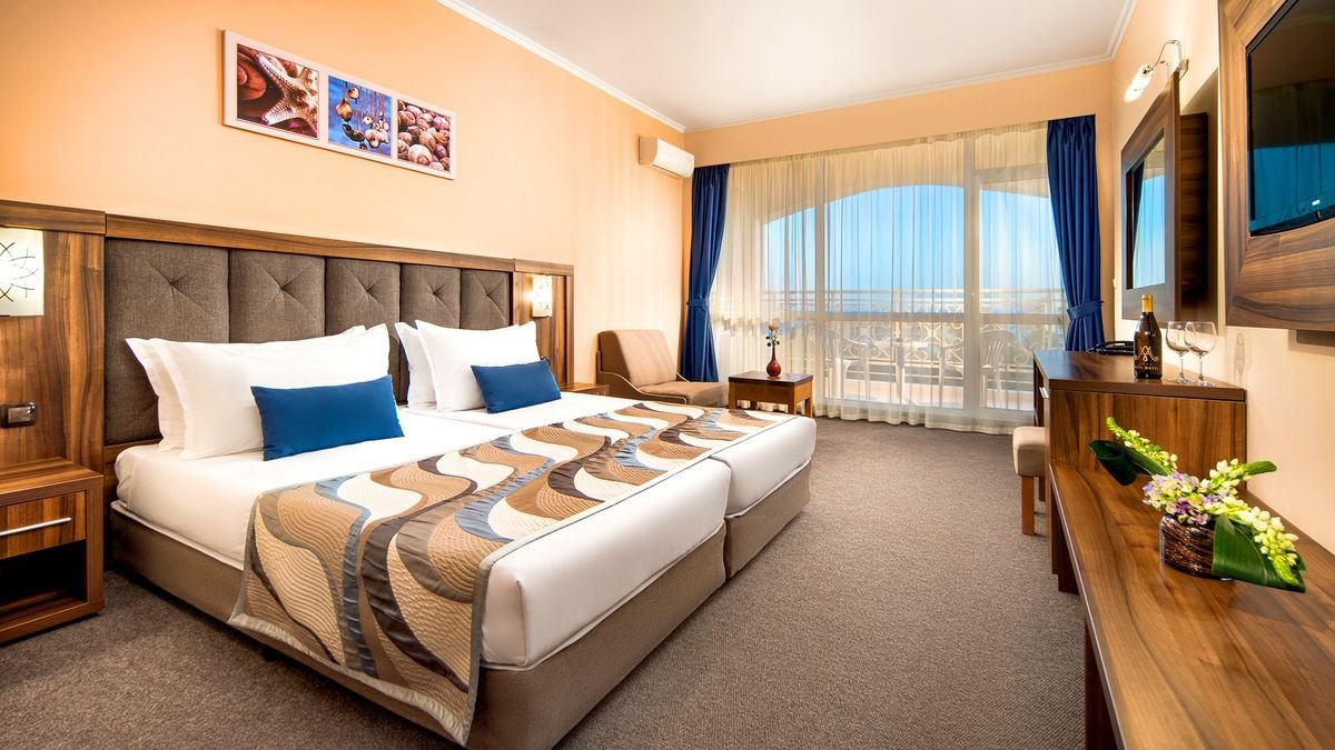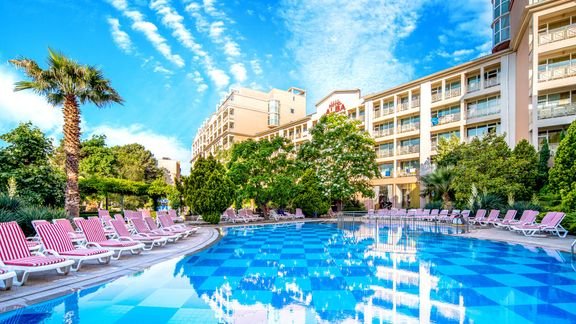 Wybierz się do Słonecznego Brzegu i poznaj jeden z najbardziej wakacyjnych zakątków świata! Rodzinny hotel położony w rozrywkowej okolicy, blisko pięknej plaży wyróżnionej prestiżową Błękitną Flagą oraz licznych sklepów z pamiątkami i pełnych lokalnego kolorytu restauracji i knajpek jest idealnym miejscem na wiele ciepłych wspomnień. Do dyspozycji Gości przygotowano bufetową restaurację pełną pysznych dań, wśród których nawet największy niejadek znajdzie coś dla siebie, kilka świetnie rozmieszczonych barów oraz 2 baseny, w tym z wydzieloną częścią dla najmłodszych, a liczne animacje są świetną rozrywką nie tylko dla dzieci, dzięki czemu nie ma tutaj miejsca na nudę. Wygodne pokoje i bogata oferta all inclusive sprawią, że zapomnisz o wszystkich troskach!