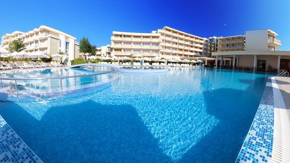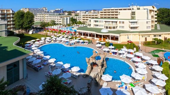 Wspaniały, rodzinny kompleks hotelowy, położony wśród zieleni, na terenie ok. 50 000 m² – to doskonała propozycja na pełne atrakcji wakacje w słonecznej Bułgarii! Jest tutaj wszystko, czego potrzeba, aby spędzić wspaniale czas i cieszyć się relaksem w gronie najbliższych: restauracja serwująca lokalne przysmaki, bary, baseny i wygodne pokoje. Coś dla siebie znajdą także najmłodsi wczasowicze: na dzieciaki czekają radosne animacje, plac zabaw i miniklub. Centrum popularnego kurortu jest w zasięgu spaceru, a dla miłośników kąpieli słonecznych – blisko hotelu plaża, wyróżniona Błękitną Flagą.
