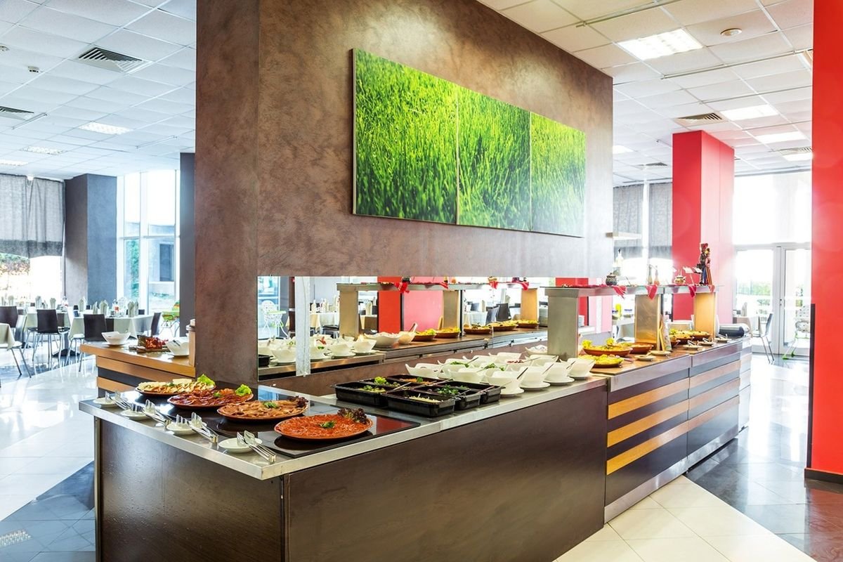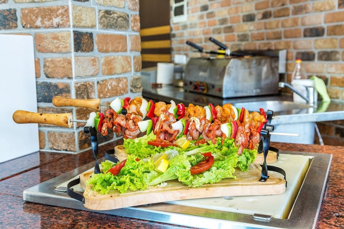śniadanie (7.30-10.00), obiad (12.00-14.00), kolacja (18.00-21.00) w formie bufetu w restauracji głównej; przekąski w wyznaczonym miejscu (10.00-17.00, 21.00-23.00); napoje bezalkoholowe oraz wybrane lokalne i importowane napoje alkoholowe w wyznaczonych barach (10.00-17.00, 18.00-23.00); wymagane noszenie opasek all inclusive.