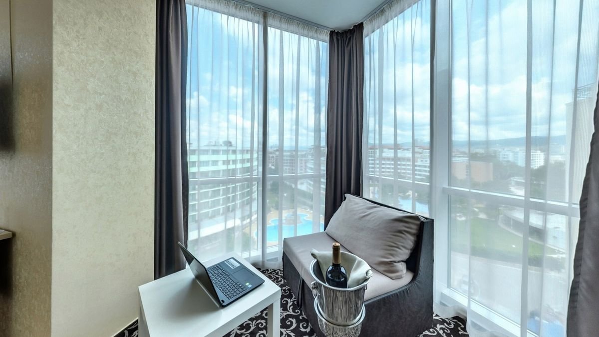 Położony bezpośrednio przy długiej i szerokiej plaży, to świetny pomysł na leniwe wakacje nad morzem. Z hotelowego basenu można wejść bezpośrednio na piaszczystą plażę, gdzie na wydzielonym odcinku do dyspozycji Gości są bezpłatne parasole i leżaki. Nowoczesne pokoje wyposażone są we wszelkie wygody potrzebne do udanego wypoczynku. W ciągu dnia prowadzone są animacje dla dzieci i dorosłych, wieczorami można posłuchać muzyki i zrelaksować się w hotelowych barach. Blisko jest do centrum Słonecznego Brzegu ze sklepami i lokalnymi knajpkami.