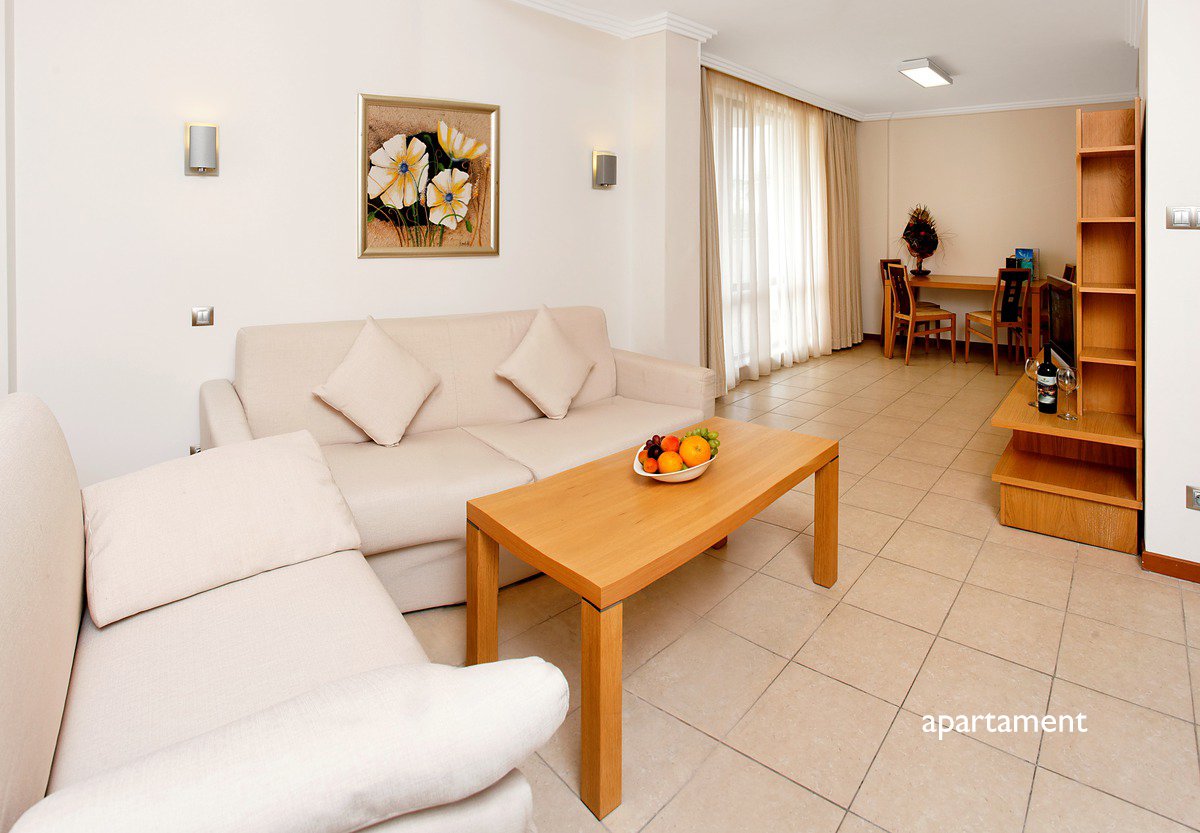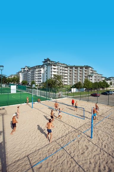 2 baseny: nieregularny kształt, słodka woda, gł. 1,5 i 1,6 m, 2 brodziki dla dzieci, gł. 0,5 m i 0,6 m, przy basenach bezpłatne parasole, leżaki, materace i ręczniki; basen kryty w spa, nieregularny kształt, słona woda, gł. 1,4 m; siatkówka plażowa, piłka nożna (podczas animacji); plac i pokój zabaw dla dzieci, miniklub (4-12 lat), animacje dla dorosłych i dzieci; za opłatą; kort tenisowy (ok. 35 BGN/godz.) z oświetleniem (ok. 10 BGN/godz.), wypożyczalnia rowerów, boisko do piłki nożnej; centrum spa: 10 pokoi leczniczych, łaźnia turecka, sauna, jacuzzi.