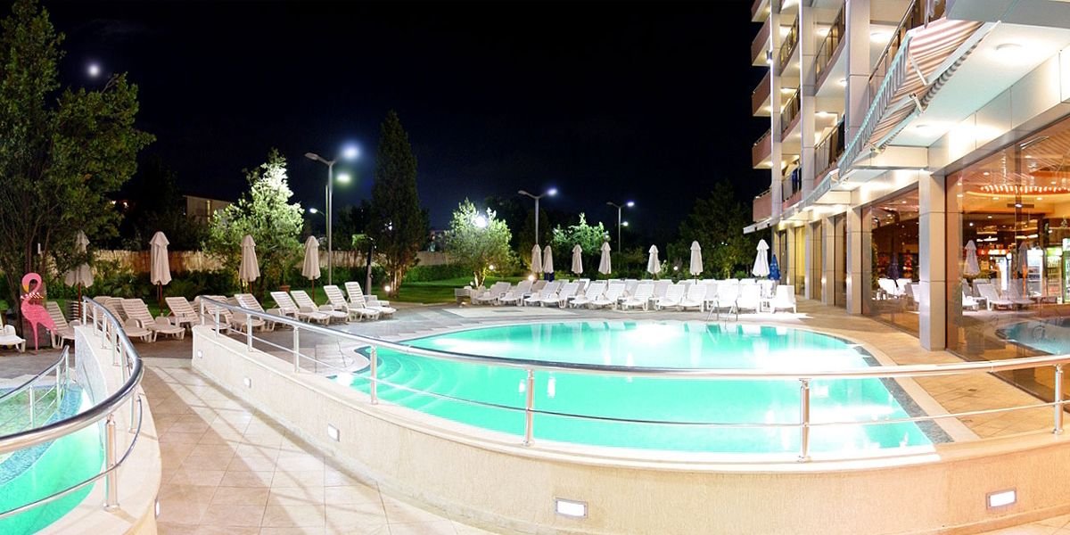 czterogwiazdkowy, zadbany, zbudowany w 2004 r., odnowiony w 2013 r., 158 pokoi, 1 budynek, 6 pięter, 2 windy, lobby, całodobowa recepcja, restauracja Flamingo – dania w formie bufetu, kuchnia bułgarska i europejska, dostępne foteliki dla dzieci, dania wegetariańskie, bar w lobby, bar przy basenie; kantor, sklep (gazety, pamiątki), parking; za opłatą: sejf w recepcji (ok. 10 BGN/dzień, ok. 50 BGN/tydzień), room-service, fryzjer, pralnia, wypożyczalnia samochodów; bezpłatny internet bezprzewodowy w miejscach ogólnodostępnych; taras z widokiem na basen i ogród, ogród; udogodnienia dla niepełnosprawnych (2 pokoje; na zamówienie); akceptowane karty kredytowe: Visa, MasterCard.