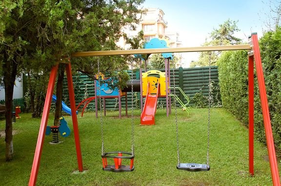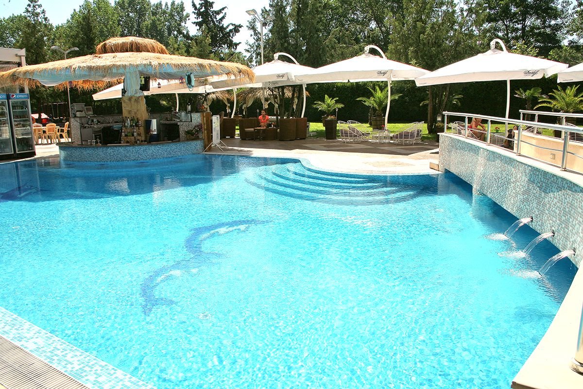 basen, nieregularny kształt, słodka woda, ok. 400 m², gł. 1,2-1,4 m, brodzik dla dzieci, słodka woda, ok. 10 m², gł. 0,4 m, przy basenie bezpłatne parasole i leżaki, ręczniki za kaucją (ok. 10 BGN); siłownia; plac i pokój zabaw dla dzieci; za opłatą: bilard, automaty do gier elektronicznych, sauna, masaże, salon piękności.