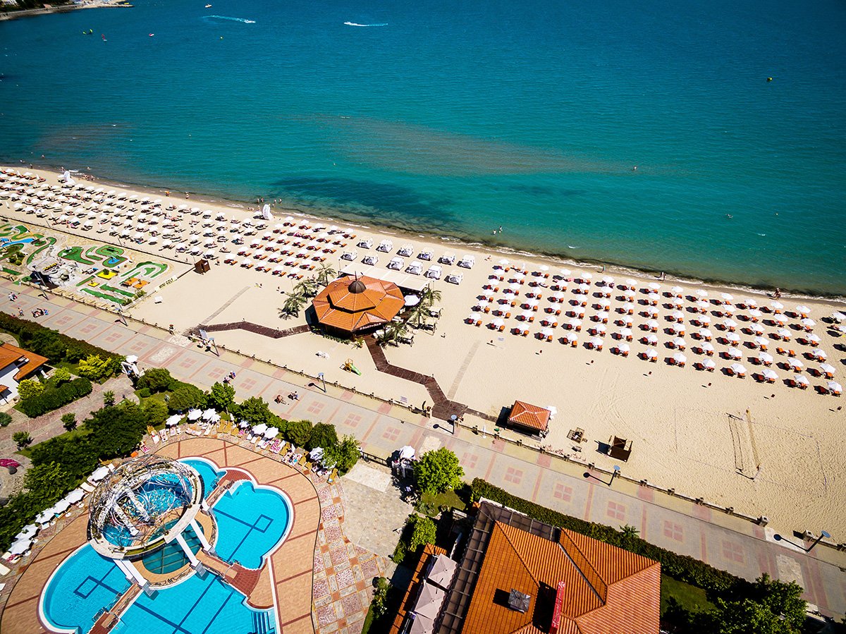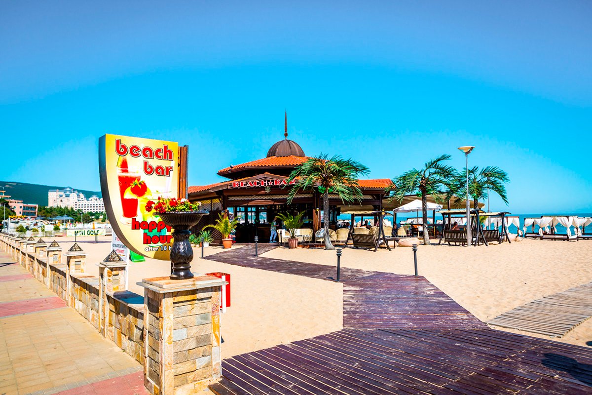 ok. 2 km od centrum SŁONECZNEGO BRZEGU, ok. 100 m od barów, ok. 650 m od sklepów, ok. 2,5 km od Action Aquapark, ok. 9 km od Nesebaru; ok. 30 km od lotniska w Burgas, ok. 100 km od lotniska w Warnie; przystanek autobusowy ok. 750 m od hotelu.