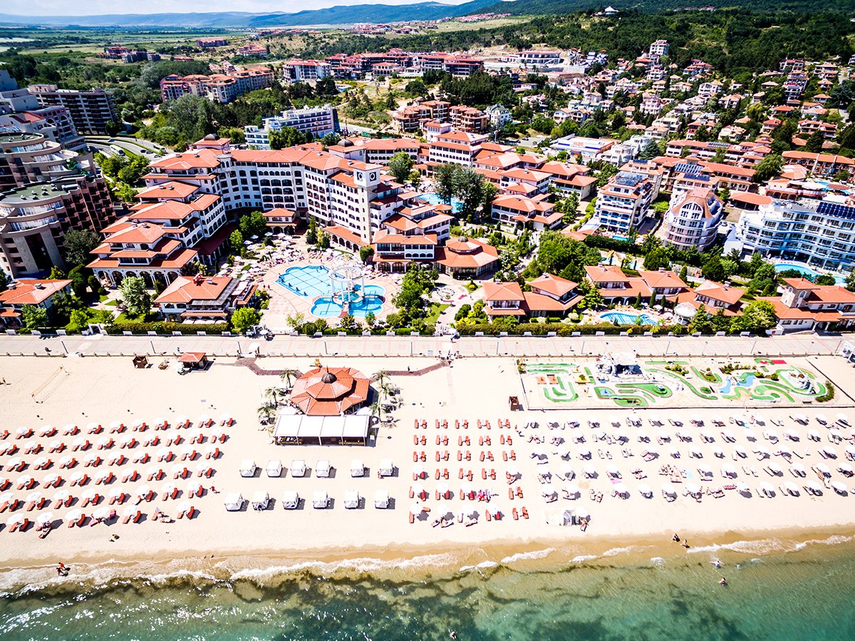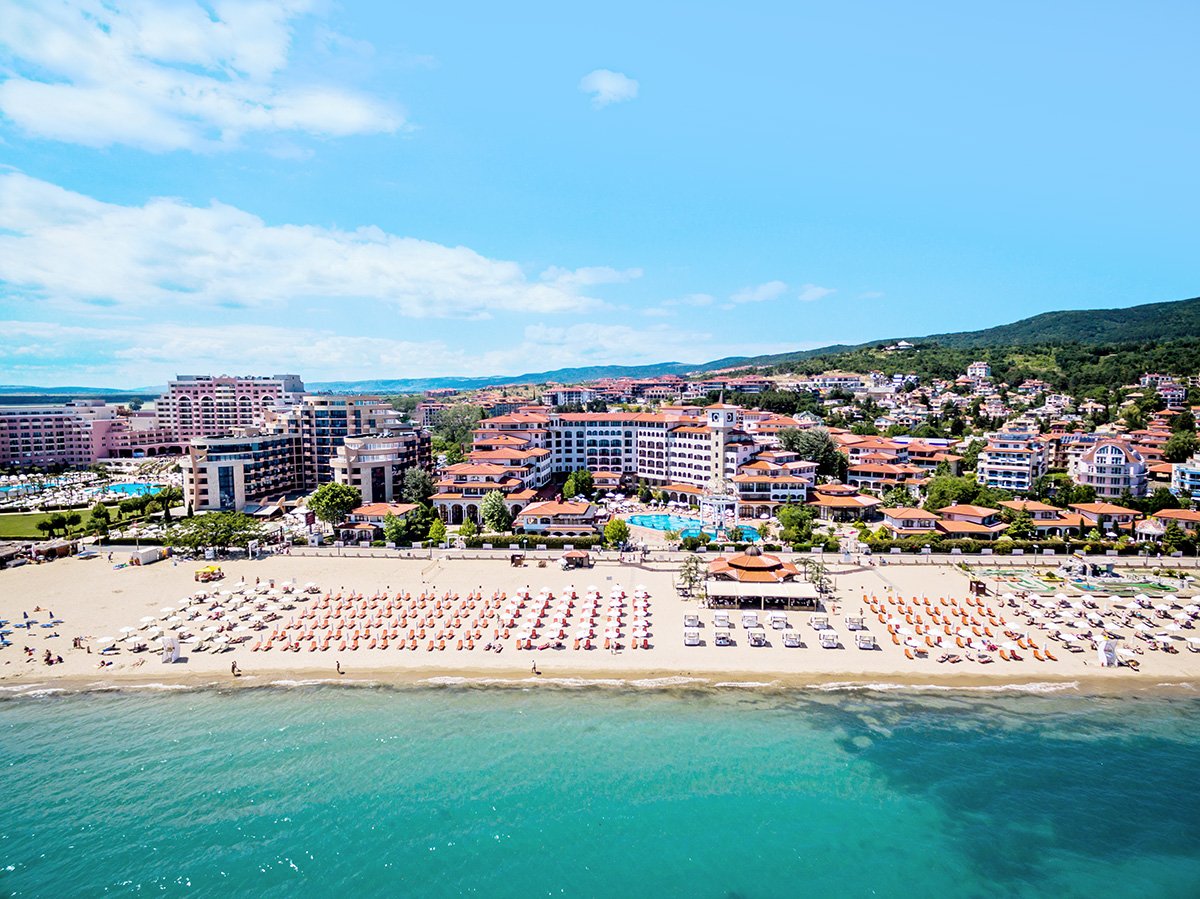 Należy do kompleksu Helena Resort, znanego z wysokiego poziomu usług, jednego z najwspanialszych miejsc na wakacje w Bułgarii! Razem z sąsiednim Helena Park i Vip Villas & Apartments jest idealnie wkomponowany w ogromny ogród zajmujący ok. 14 tys. m², wyróżnia się elegancką architekturą nawiązującą do stylu bułgarskiego renesansu. Helena Sands to jeden z najlepszych hoteli w Słonecznym Brzegu – komfortowe, przestronne pokoje i profesjonalny serwis są na najwyższym, światowym poziomie. Położony blisko plaży, przy nadmorskiej promenadzie z pięknym, dużym basenem do wyłącznej dyspozycji Gości, gwarantuje udany wypoczynek. Pełen relaks czeka w bogato wyposażonym hotelowym spa z basenem krytym i saunami.
