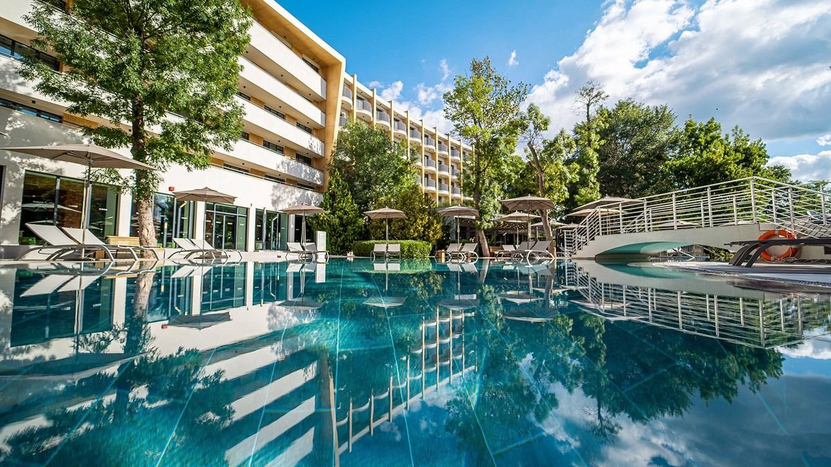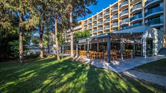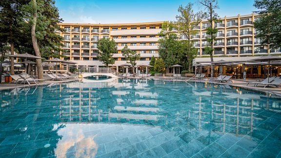 Klubowy hotel Bor, to doskonałe miejsce na wspaniałą letnią rozrywkę zarówno dla młodych, jak i dla rodzin z dziećmi! Położony w prywatnym parku w słynnym kurorcie Słoneczny Brzeg oferuje swoim Gościom wszystko, co potrzebne do wypoczynku w promieniach bułgarskiego słońca. Na miejscu bogate zaplecze sportowo-rekreacyjne: w dzień możesz popływać w basenie, zadbać o formę na siłowni lub zagrać w siatkówkę, a wieczorem zaszaleć na parkiecie lub podziwiać występy na żywo. Dla najmłodszych przygotowano gry i zabawy w miniklubie, a także brodzik. Udany wypoczynek dopełni znana i lubiana formuła ultra all inclusive 24h. W odległości krótkiego spaceru znajduje się piaszczysta, rozległa plaża – idealna na błogie lenistwo! Warto również wybrać się na zwiedzanie pobliskiego, wpisanego na Listę Światowego Dziedzictwa UNESCO, starożytnego Nesebaru z zabytkową starówką.