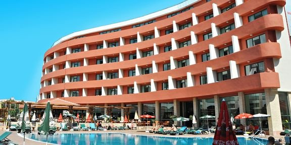 w dzielnicy hotelowej, przy drodze lokalnej, ok. 700 m od centrum SŁONECZNEGO BRZEGU, w pobliżu sklepów i barów, ok. 2 km od Action Aquapark, ok. 6 km od Nessebaru; ok. 35 km od portu lotniczego w Burgas, ok. 95 km od portu lotniczego w Warnie; przystanek autobusowy ok. 250 m od hotelu (ok. 1 BGN/centrum Słonecznego Brzegu, Nessebar, ok. 6 BGN/Burgas).