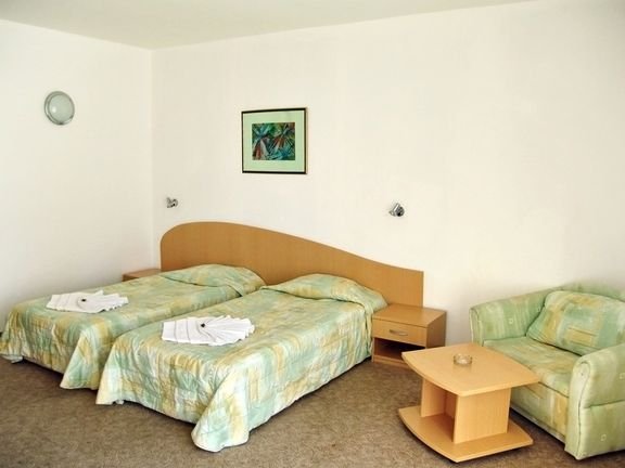 standardowy: 2-os. (możliwość 1 lub 2 dostawek dla dzieci), ok. 30 m² (pokój z 2 dostawkami większy), klimatyzowany, łazienka (prysznic, wc; suszarka), telewizja satelitarna, telefon, minibar (płatny wg konsumpcji); łóżeczko dla dziecka do 2 lat na zamówienie przed przyjazdem (płatne: ok. 5 BGN/dzień); balkon (stolik, krzesełka; suszarka); pokój z 2 dostawkami za dopłatą.