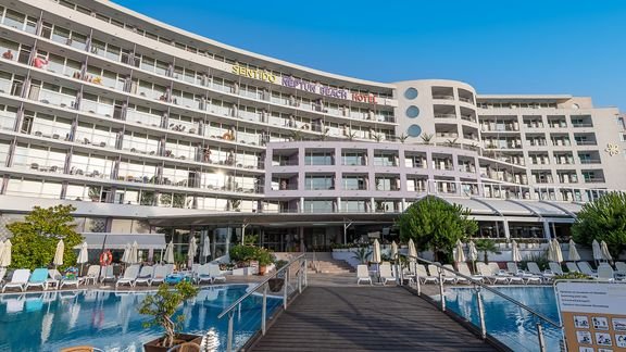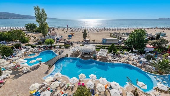 Idealnie położony tuż przy promenadzie oddzielającej hotel od pięknej, długiej i szerokiej plaży, w samym centrum popularnego, urlopowego kurortu. Elegancki i stylowy, należy do znanej i cenionej za świetną jakość świadczonych usług sieci Sentido Hotels & Resorts. Najlepiej wypoczywa się tu przy dużym, fantrazyjnie zaprojektowanym basenie z cudownym widokiem na morze. Goście mają do dyspozycji eleganckie i funkcjonalne pokoje, 2 restauracje i 3 bary. Tutaj nie ma szans na nudę – szeroka oferta sportowa, animacje, centrum wellness i... mnóstwo atrakcji wokół – jesteś w centrum Słonecznego Brzegu! To doskonała opcja zarówno dla paczki przyjaciół, chcących skorzystać z rozrywek miasta, jak i rodzin, które planują spędzić czas w hotelu.