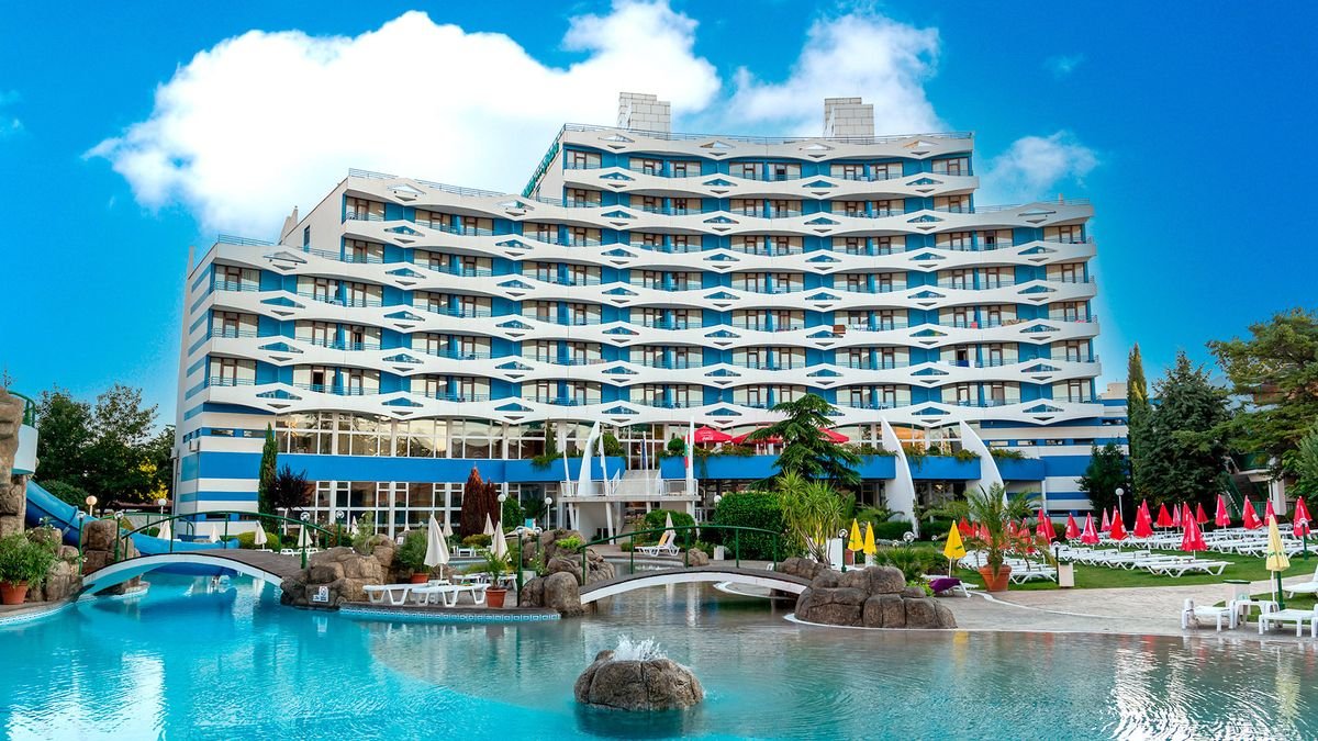 w dzielnicy hotelowej, ok. 1,4 km od centrum SŁONECZNEGO BRZEGU, w pobliżu sklepów i barów, ok. 2,5 km od Action Aquapark, ok. 5 km od Nessebaru; ok. 30 km od lotniska w Burgas, ok. 100 km od lotniska w Warnie; przystanek autobusowy ok. 400 m od hotelu (ok. 1,5 BGN/centrum Słonecznego Brzegu, Nessebar; ok. 7 BGN/Burgas).