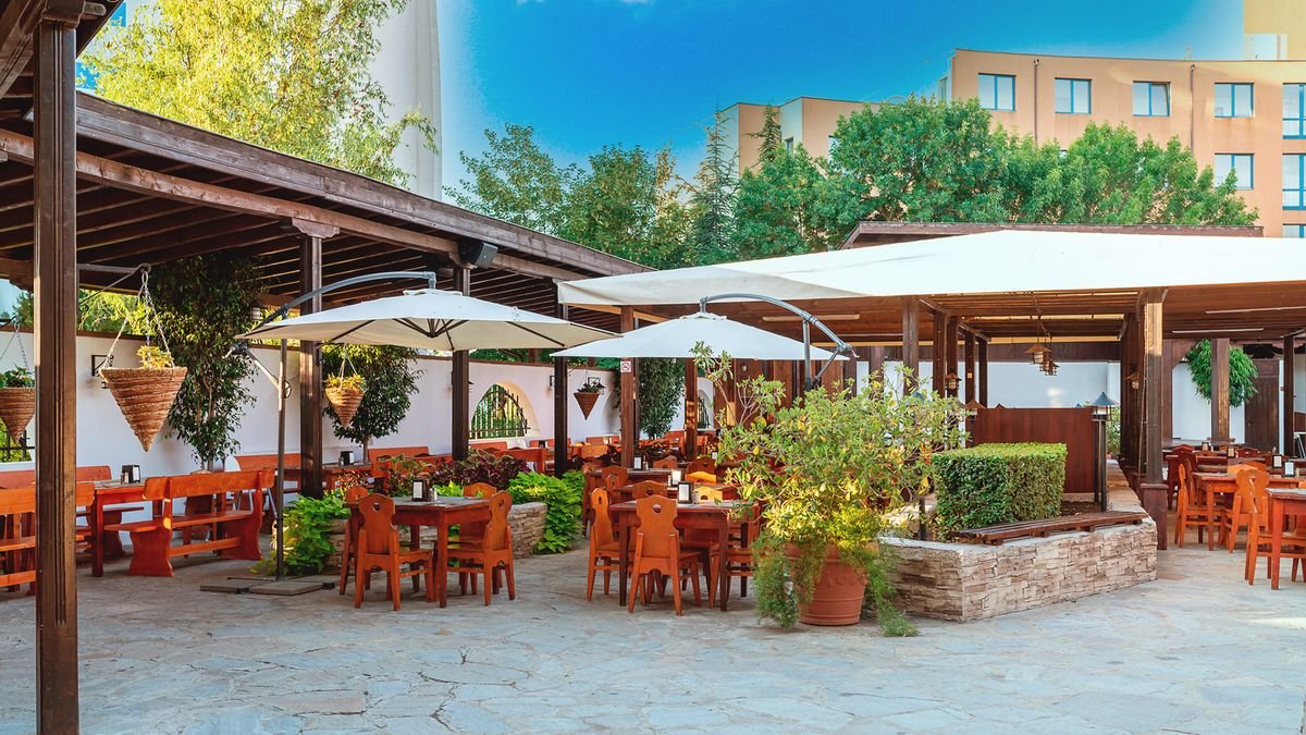 czterogwiazdkowy, należy do kompleksu hoteli Trakia, zbudowany w 2003 r., odnowiony w 2018 r., 171 pokoi, 1 budynek, 9 pięter, 2 windy, przestronne, eleganckie lobby, całodobowa recepcja, restauracja główna – dania w formie bufetu, kuchnia międzynarodowa, w restauracji dostępne foteliki dla dzieci, 3 bary: w lobby, przy basenie i Mezzanine Bar; kantor, minimarket, sklep z pamiątkami, kiosk; ogród, bezpłatny internet bezprzewodowy w miejscach ogólnodostępnych; za opłatą: sejf w recepcji (ok. 5 BGN/dzień), parking (12 BGN/dzień), pralnia; udogodnienia dla osób z niepełnosprawnościami; akceptowane karty kredytowe: Visa, MasterCard, Diners Club, Maestro.