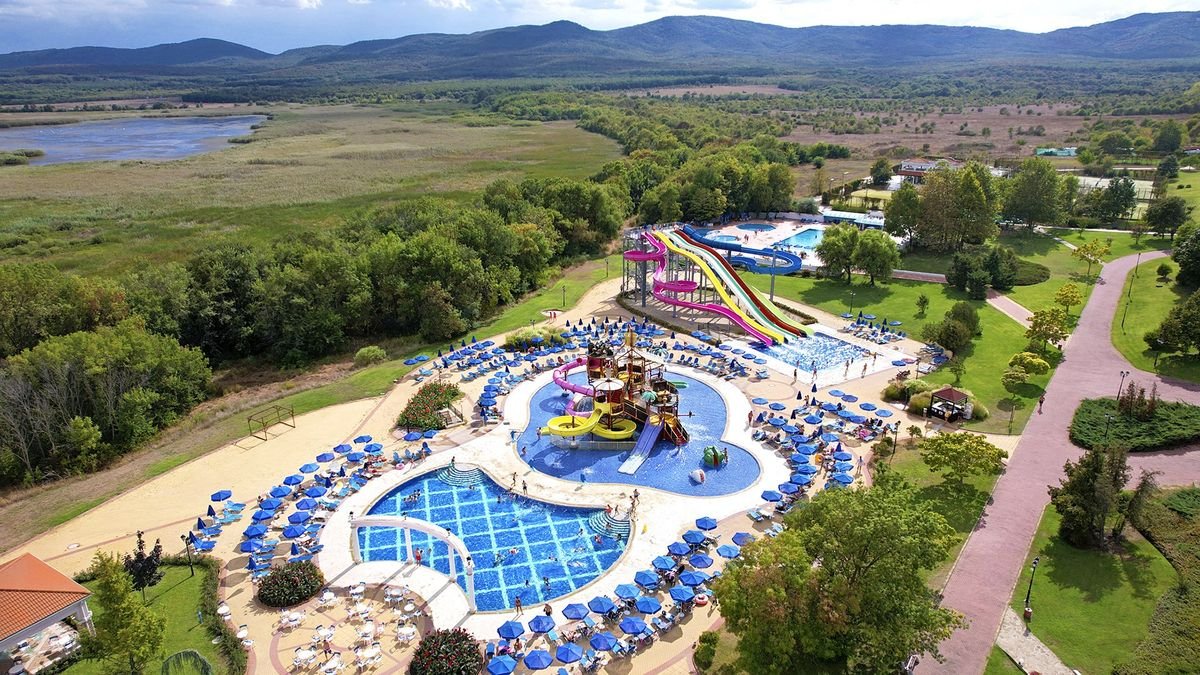 •kryty basen•na terenie resortu: łącznie 4 baseny z wydzieloną częścią dla dzieci, Duni Aquapark (czynny: 01.06-15.09, termin może ulec zmianie): zjeżdżalnie dla dorosłych i park wodny dla dzieci