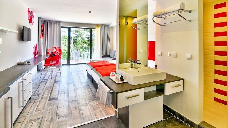 Planujesz urlop tylko we dwoje? Mamy dla Ciebie niesamowite miejsce tylko dla dorosłych, gdzie odpoczniesz w spokojnej okolicy i kameralnej atmoferze. Niedaleko jest piaszczysta plaża z bezpłatnym serwisem, a w bezpośrednim sąsiedztwie znajduje się duży park, idealny na piesze wędrówki. Odpoczniesz tu w przestronnym i komfortowym pokoju, z którego masz widok na basen. Nie zabraknie Ci również atrakcji, do dyspozycji Gości jest bezpłatna wypożyczalnia rowerów, tenis stołowy oraz rzutki, a raz w tygodniu zobaczysz wieczorny program rozrywkowy. Słoneczna Bułgaria czeka!