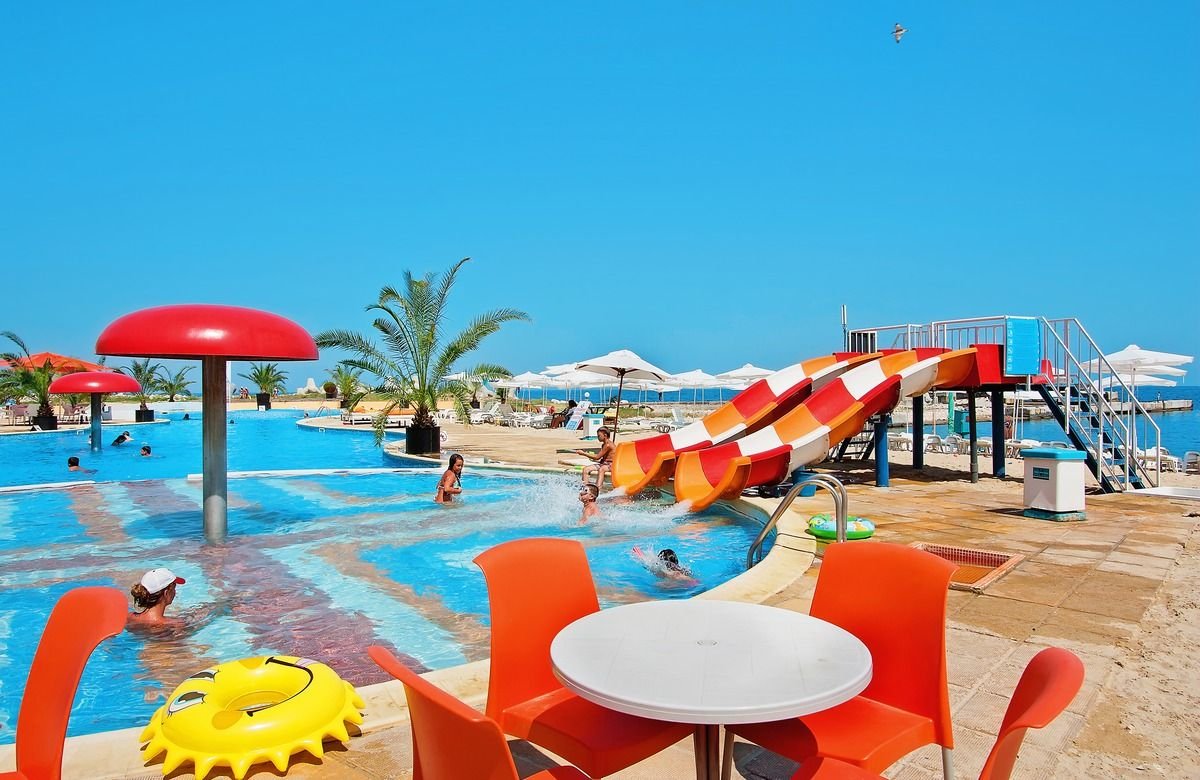 basen, nieregularny kształt, słodka woda, ok. 300 m², gł. 0,5-1,6 m, wydzielona część dla dzieci, zjeżdżalnie dla dzieci, przy basenie bezpłatnie ręczniki oraz 1 parasol + 2 leżaki/pokój; tenis stołowy, bilard, rzutki, boccia, aqua aerobik; na terenie kompleksu: piłka nożna na plaży, siatkówka plażowa; pokój i plac zabaw dla dzieci, miniklub (3-12 lat), dyskoteka, dzienne i wieczorne animacje dla dorosłych i dzieci (czerwiec-sierpień); za opłatą: na terenie kompleksu: 4 korty tenisowe z oświetleniem i wypożyczalnią sprzętu, siłownia, centrum spa z krytym basenem (basen i wszystkie zbiegi płatne).