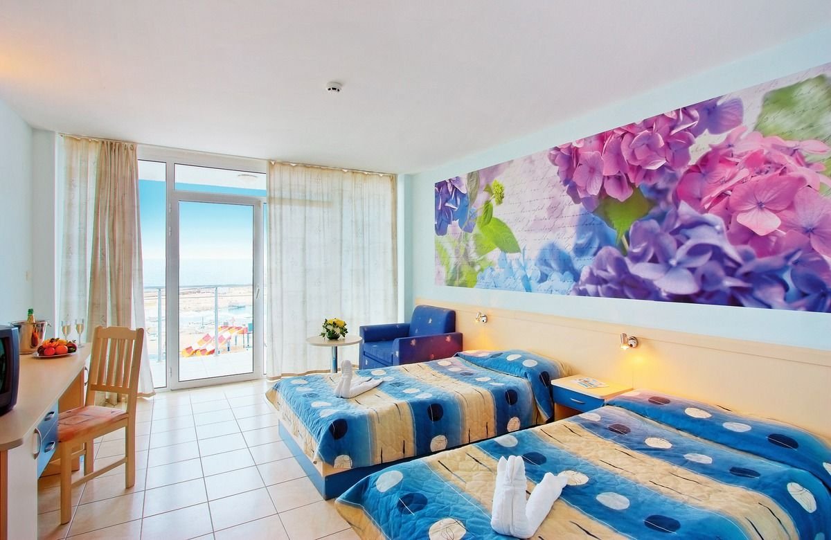 standardowy: 2-os. (możliwość 1 lub 2 dostawek), ok. 24 m², klimatyzowany, łazienka (wanna, wc; suszarka), bezpłatny internet bezprzewodowy, telewizja satelitarna, telefon, sejf, lodówka (płatna); bezpłatne łóżeczko dla dziecka do 2 lat na zamówienie przed przyjazdem; balkon (stolik i krzesełka), widok na morze.