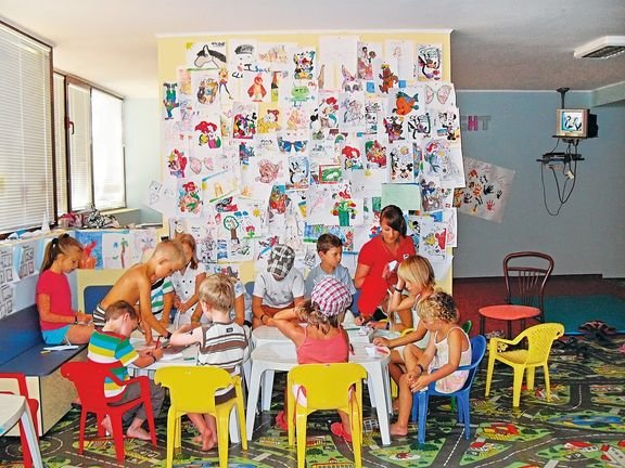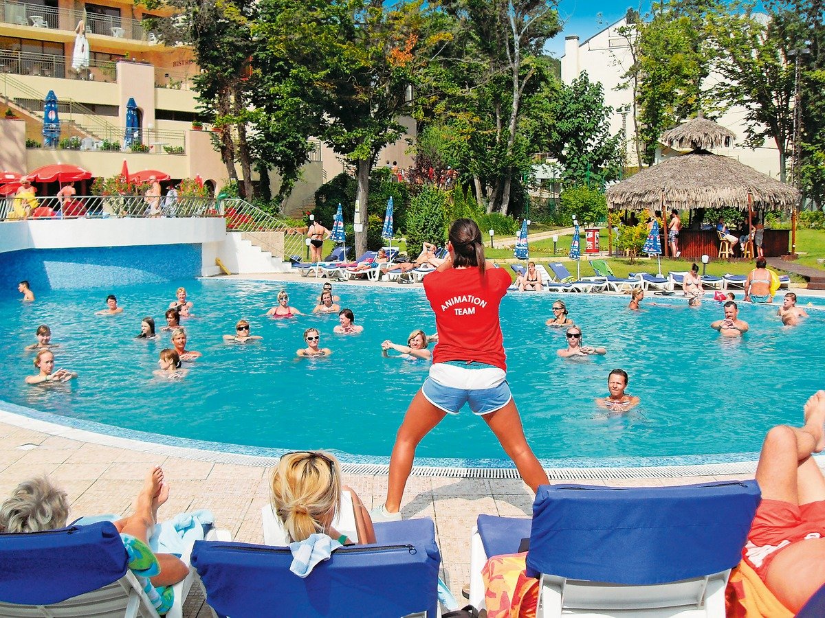 basen na dwóch poziomach, nieregularny kształt, słodka woda, ok. 550 m², gł. 1,3-1,5 m, basen dla dzieci, nieregularny kształt, słodka woda, ok. 55 m², gł. 0,7 m, przy basenach bezpłatne parasole, leżaki, materace i ręczniki; kryty basen, ok. 73 m², gł. 1,3 m; tenis stołowy, rzutki, boule, szachy, badminton, siłownia; pokój i plac zabaw dla dzieci, w lipcu i sierpniu: miniklub (3-12 lat), minidisco dla dzieci, dzienne i wieczorne animacje dla dorosłych i dzieci: aerobik, aqua aerobik, minipiłka nożna, siatkówka; za opłatą: kort tenisowy (20 BGN/godz. bez oświetlenia, 30 BGN/godz. z oświetleniem), boisko wielofunkcyjne poza programem animacyjnym: minipiłka nożna, siatkówka (30 BGN/godz. bez oświetlenia, 50 BGN/godz. z oświetleniem), bilard, salon gier elektronicznych; centrum wellness: jacuzzi, łaźnia parowa, masaże, zabiegi upiększające i lecznicze z wykorzystaniem balneo- i thalassoterapii, fryzjer, manicure, pedicure; sporty wodne na plaży (oferta zewnętrzna).