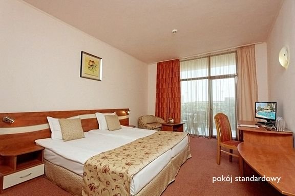 standardowy: 2-os. (możliwość 1 dostawki: rozkładana sofa 1-os. lub łóżko piętrowe dla dwójki dzieci), ok. 21 m², ładnie umeblowany, klimatyzowany, łazienka (prysznic, wc; suszarka), telewizja satelitarna, telefon, lodówka; za opłatą: sejf (55 BGN/tydz., 67 BGN/2tyg.); bezpłatne łóżeczko dla dziecka do 2 lat na zamówienie przed przyjazdem; balkon (stolik i krzesełka); boczny widok na morze za dopłatą; pokój z 2 dostawkami za dopłatą; rodzinny superior: 4-os (łóżko małżeńskie i pojedyncze, rozkładana sofa), ok. 24 m, wyposażenie jak w pokoju standardowym, dodatkowo czajnik elektryczny oraz szlafroki w łazience; pokój rodzinny superior za dopłatą.