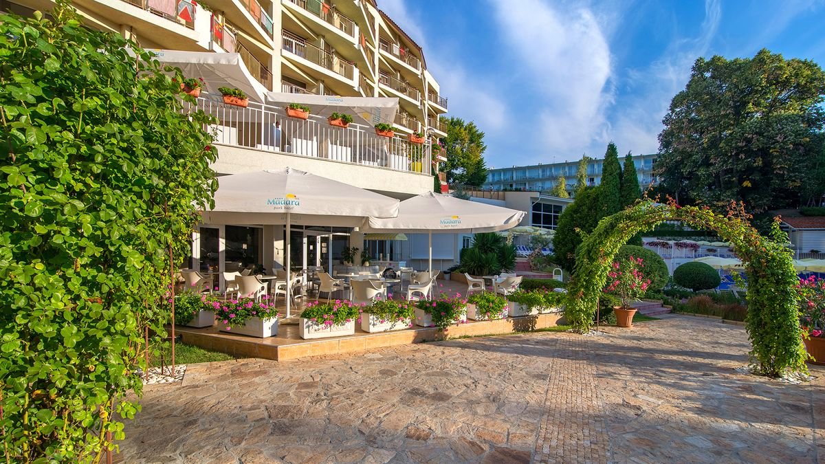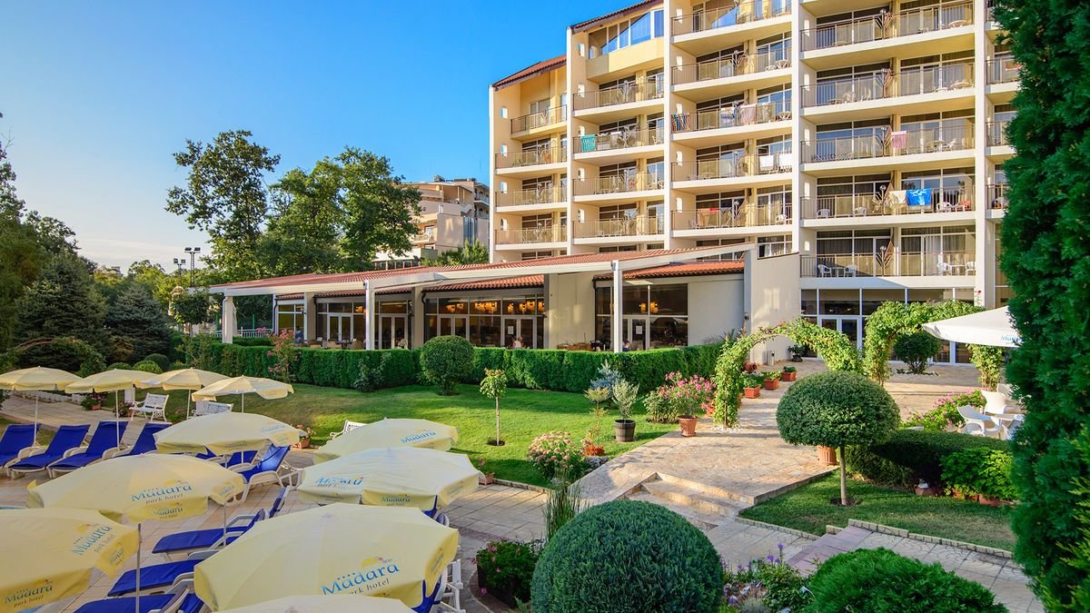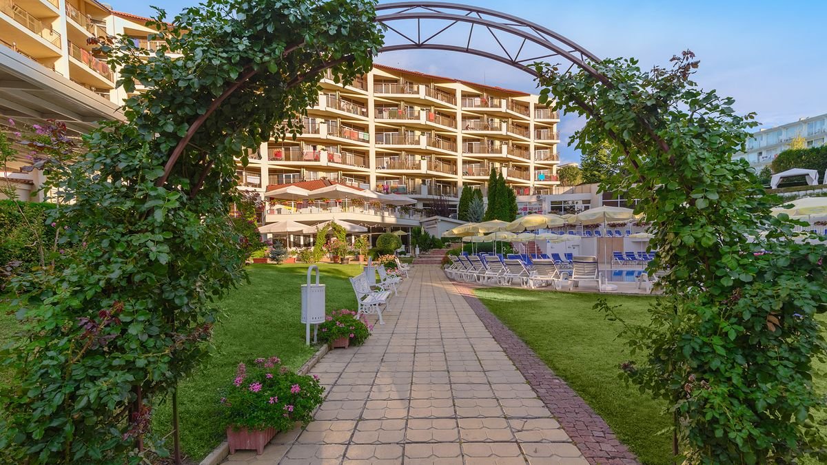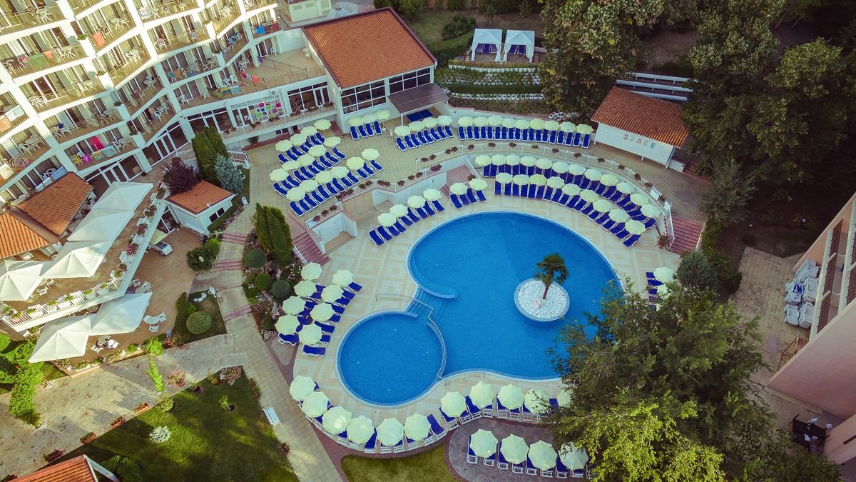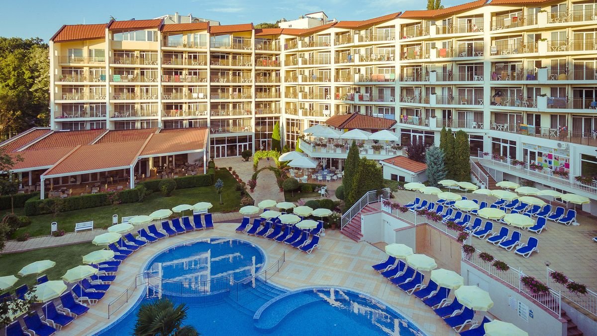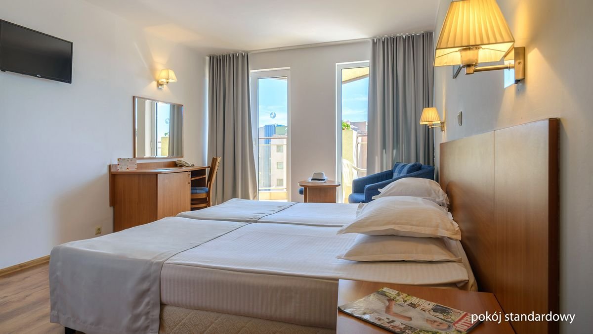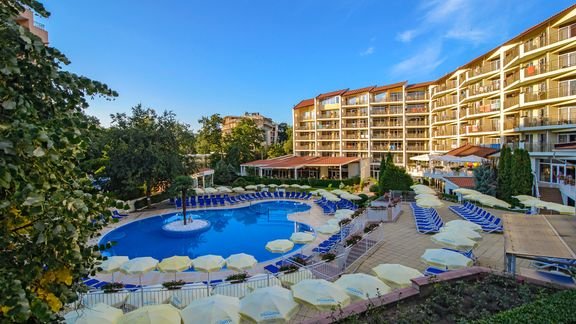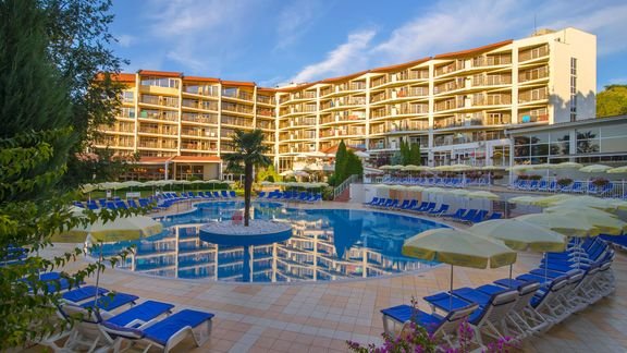 Przyjemny hotel w zielonym otoczeniu, jednocześnie blisko plaży i w odległości spaceru od tętniącego życiem wakacyjnego kurortu – Złotych Piasków. Otoczony lasem, elegancko urządzony, oferuje zakwaterowanie w wygodnych pokojach, do dyspozycji Gości są także restauracja i bary. Na terenie hotelu baseny z tarasami do relaksu na leżaku, nie brakuje również atrakcji dla dzieci: plac zabaw, miniklub i wesołe animacje nie pozwolą na nudę!