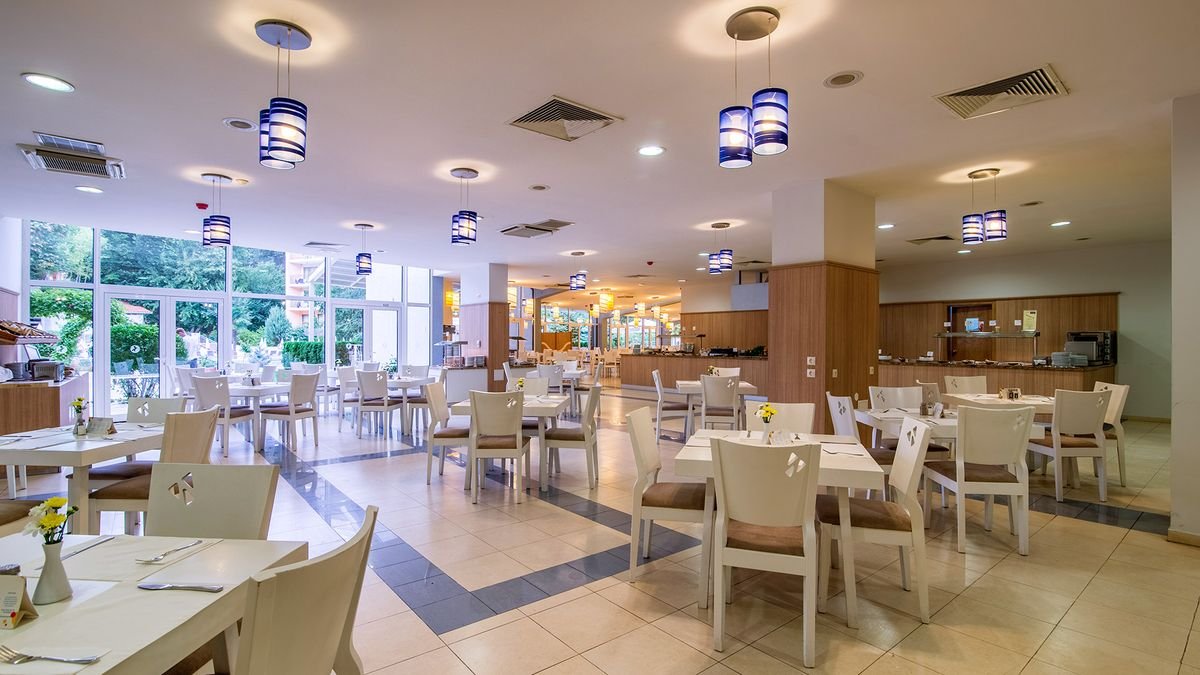 śniadanie (7.30-10.00), obiad (12.00-14.00), kolacja (18.00-21.00) w formie bufetu, w restauracji; zimny bufet, przekąski, owoce (10.00-16.00) oraz lody (12.00-18.00) w wyznaczonym barze/restauracji; pizza, pieczone ziemniaki w wyznaczonym barze/restauracji (12.00-16.00); napoje bezalkoholowe i lokalne napoje alkoholowe w wyznaczonym barze/restauracji (10.00-23.00);wymagane noszenie opasek all inclusive.