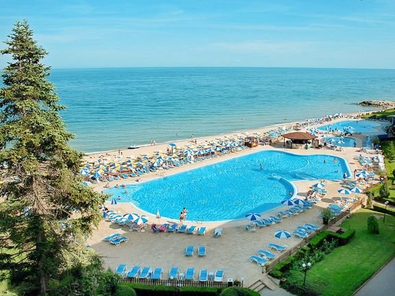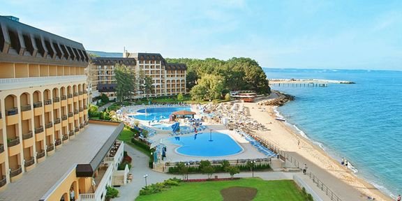 pięciogwiazdkowy, gustownie urządzony, zbudowany w 2004 r., 2 budynki: Riviera Beach 1 i Riviera Beach 2, 290 pokoi, 5-6 pięter, 5 wind; w każdym budynku: eleganckie lobby, całodobowa recepcja; 2 restauracje główne: Riviera w budynku 1 i Romantica w budynku 2 – dania w formie bufetu, kuchnia europejska, dostępne foteliki i menu dla dzieci, dania wegetariańskie, restauracja Gallery z tarasem – à la carte, kuchnia bułgarska i międzynarodowa, dostępne foteliki dla dzieci, dania wegetariańskie, przystosowana do organizacji bankietów i przyjęć, Fish przy plaży, z tarasem i pięknym widokiem na morze – à la carte, ryby i owoce morza; lobby-bar w eleganckim foyer budynku 1, z tarasem wychodzącym w stronę morza, bar Romantica w lobby w budynku 2, bar przy basenie; kantor, sklep z pamiątkami, perfumeria, ładnie zagospodarowany ogród; centrum konferencyjne dla 300 osób, bezpłatny internet bezprzewodowy w lobby i centrum konferencyjnym; za opłatą: punkt internetowy (2,5 BGN/godz.), room-service, wypożyczalnia samochodów, pralnia i prasowalnia, fryzjer; akceptowane karty kredytowe: Visa, MasterCard, American Express.