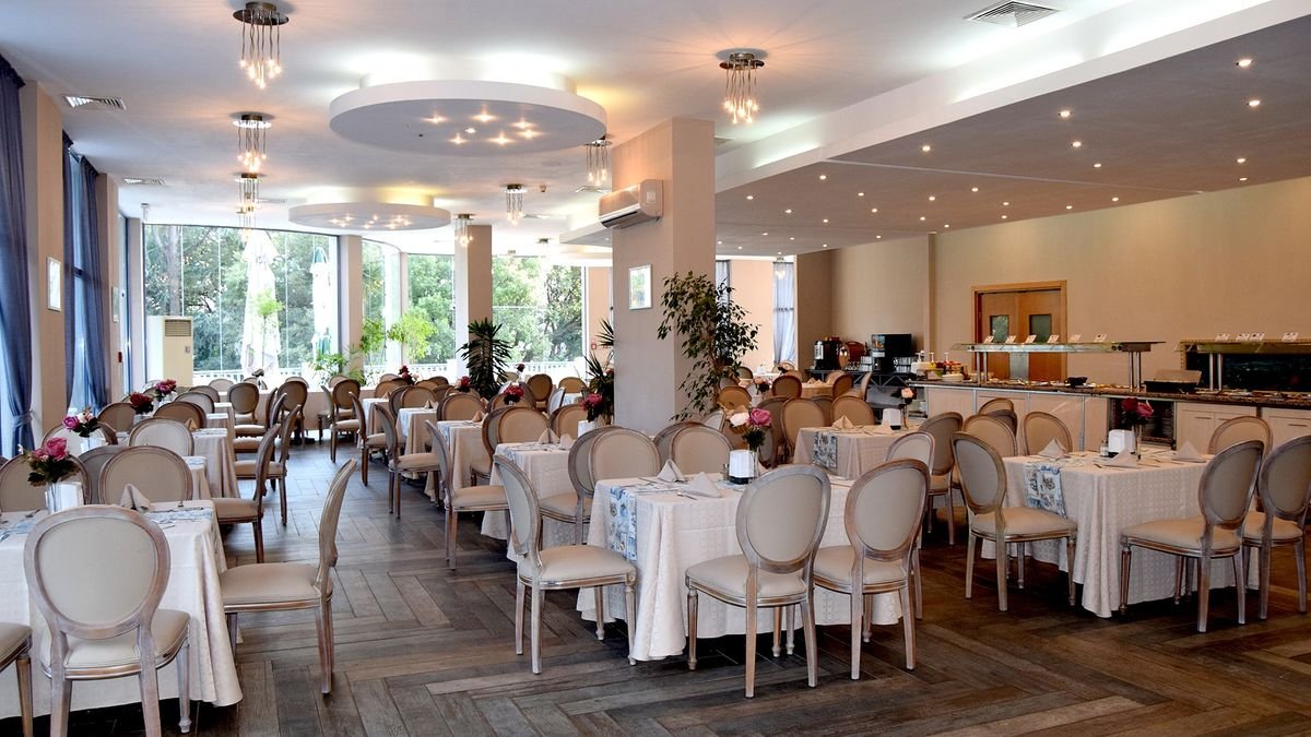 czterogwiazdkowy, zbudowany w 2001 r., odnowiony w 2015 r., 145 pokoi, 1 budynek, 6 pięter, 2 windy, hol, całodobowa recepcja, 2 restauracje: Sofia z tarasem – dania w formie bufetu, kuchnia międzynarodowa, dostępne foteliki i menu dla dzieci, dania wegetariańskie, 3 razy w tygodniu kolacje tematyczne, Mediterraneo – à la carte, kuchnia śródziemnomorska, dostępne foteliki dla dzieci, wymagana wcześniejsza rezerwacja, podczas kolacji obowiązuje strój formalny (panowie – długie spodnie), 3 bary, w tym przy basenie i na plaży; kiosk, kantor; bezpłatny internet bezprzewodowy; za opłatą: sejf w recepcji, pralnia, wypożyczalnia samochodów, parking; na terenie hotelu występują różnice poziomów; akceptowane karty kredytowe: Visa, MasterCard.