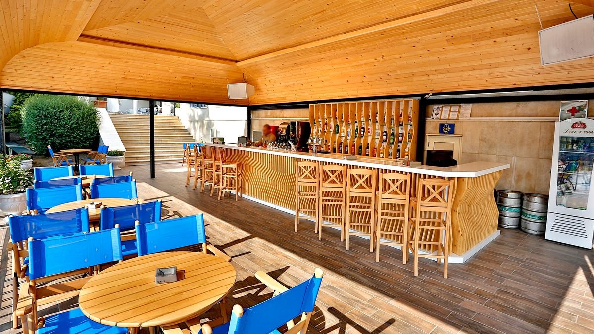 basen, nieregularny kształt, słodka woda, ok. 450 m², gł. 1,2-1,8 m, wydzielona część dla dzieci, ok. 5 m², przy basenie bezpłatne parasole i leżaki; tenis stołowy, rzutki, fitness, aqua aerobik, siatkówka plażowa; plac zabaw dla dzieci, miniklub (4-12 lat), minidisco, animacje dla dzieci i dorosłych (6 dni w tygodniu), gry planszowe; za opłatą: minigolf, bilard, masaże.