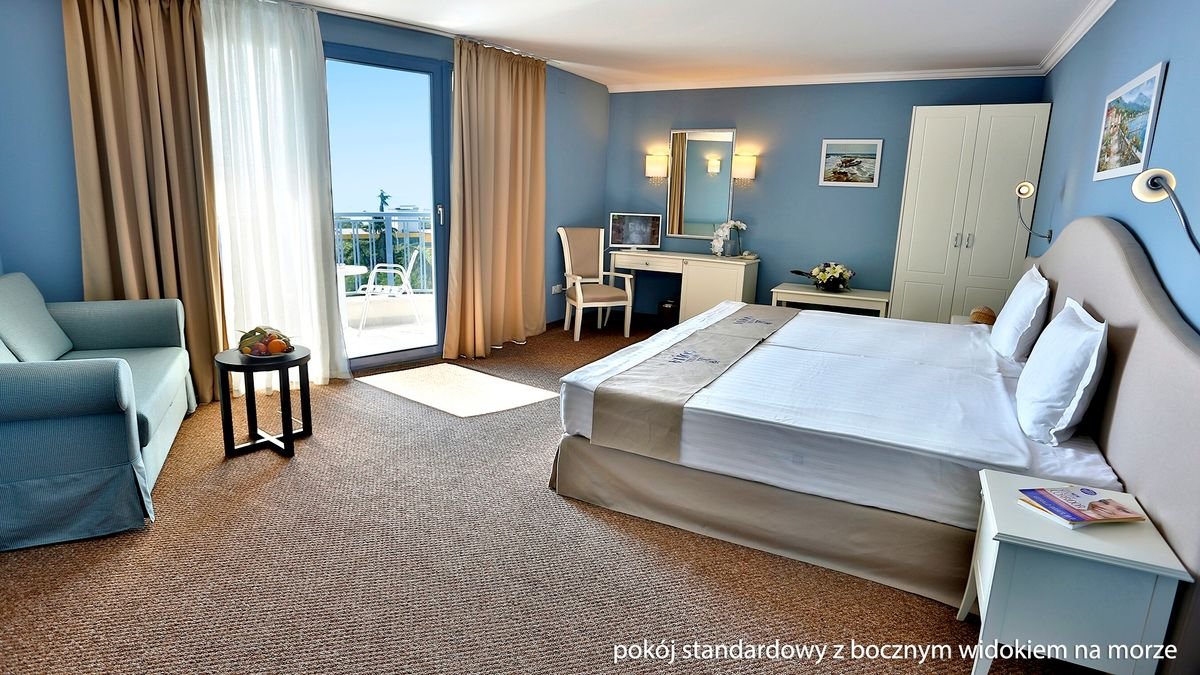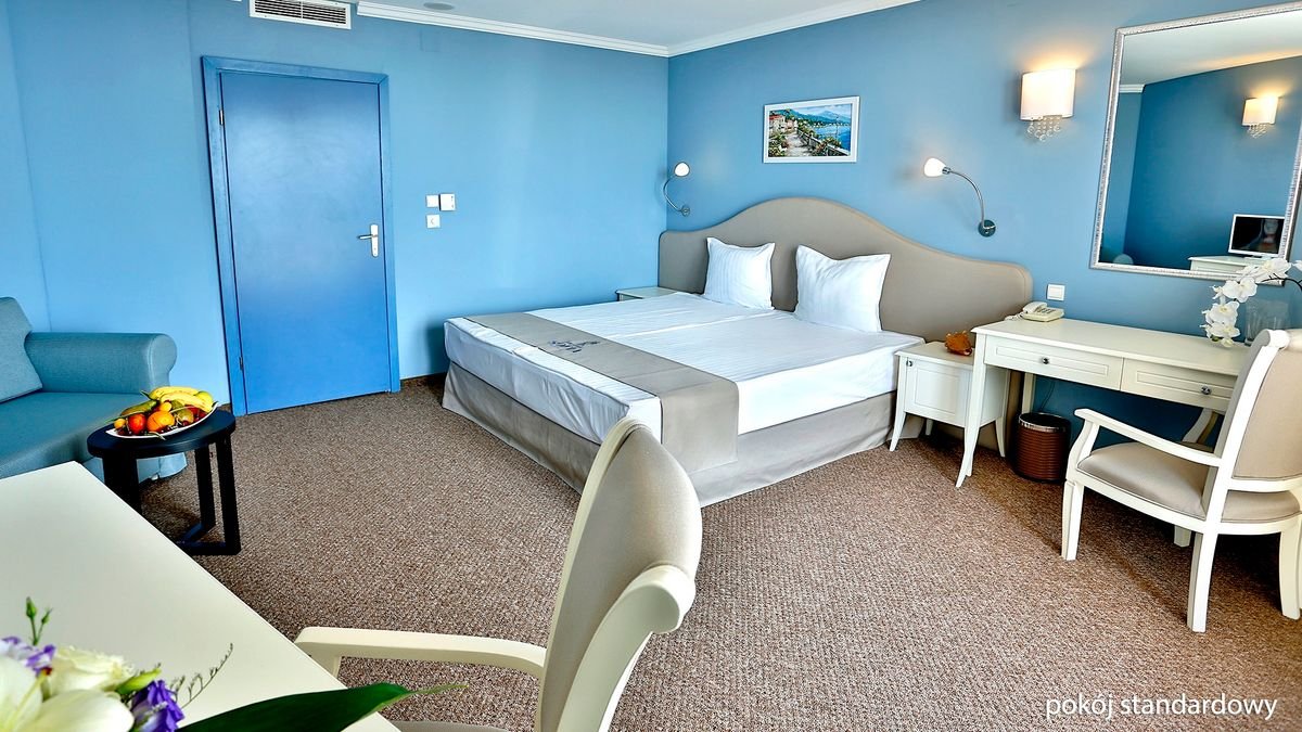 standardowy: 2-os. (możliwość 1 dostawki dla os. dorosłej lub 2 dla dzieci), ok. 21 m², klimatyzowany, łazienka (prysznic, wc; suszarka), internet bezprzewodowy, telewizja satelitarna, telefon, minibar (płatny); bezpłatne łóżeczko dla dziecka do 2 lat na zamówienie przed przyjazdem; balkon (stolik i krzesełka); boczny i frontalny widok na morze za dopłatą.