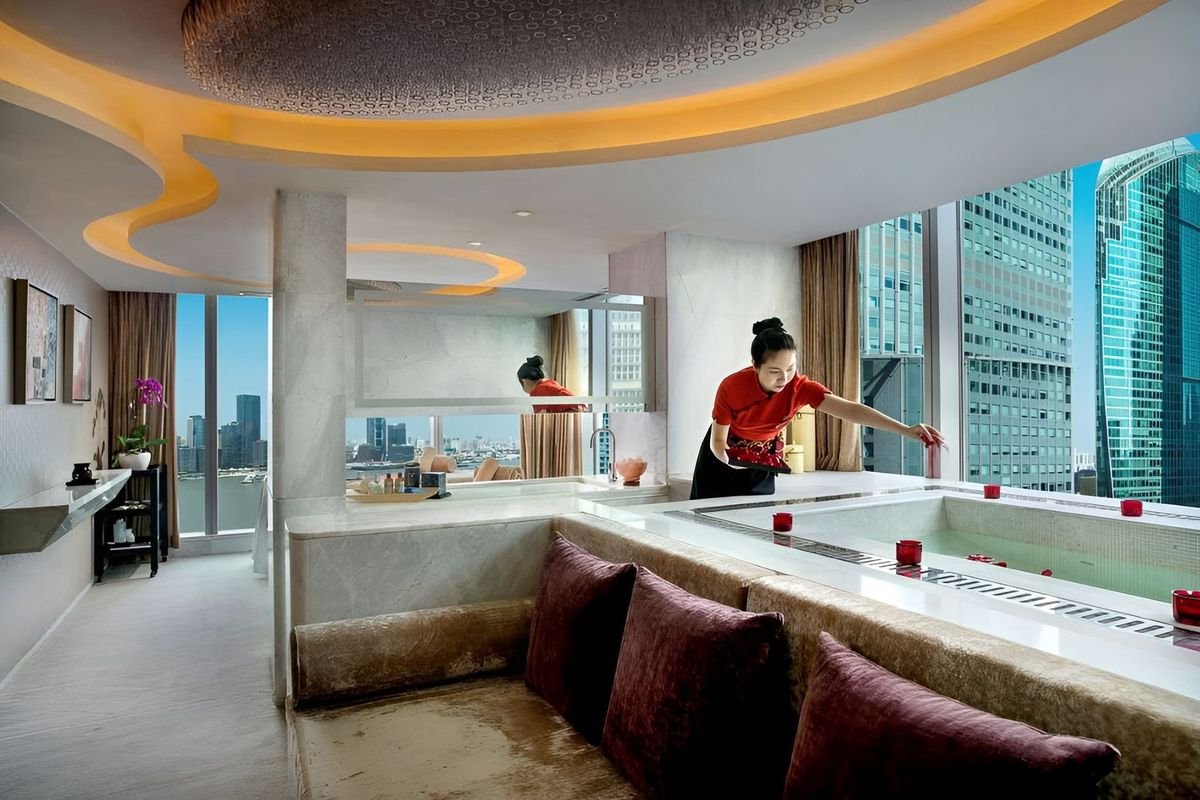 Jeśli chcesz spać praktycznie w chmurach, ten hotel jest dla Ciebie! Piękne pokoje, dobrze wyposażona siłownia i basen, a to wszystko z fantastycznymi widokami na miasto od rana do wieczora. Na miejscu znajdziesz świetne restauracje, od kantońskich smaków po kuchnię międzynarodową. Goście chwalą obsługę na wysokim poziomie i lokalizację tuż obok Oriental Pearl TV Tower. To adres, który zostaje w pamięci na długo.
