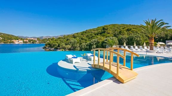 Chcesz się zatrzymać w malowniczym, bezpiecznym porcie, gdzie rano będzie Cię budził szum morza? Ten hotel to idealny wybór! Położony tuż przy plaży, na pięknej wyspie, niedaleko centrum klimatycznego miasta Korčula, zaprasza na beztroskie wakacje w wyjątkowym otoczeniu. W hotelu jasne, przestronne pokoje, restauracje i bary, w tym na plaży, a także baseny, z których podziwiać można niezapomniane widoki na zatokę. Na dzieci czeka tu plac zabaw oraz rozrywkowe animacje dla całej rodziny. Koniecznie wypożycz rower i zwiedź miasto oraz jego okolicę!