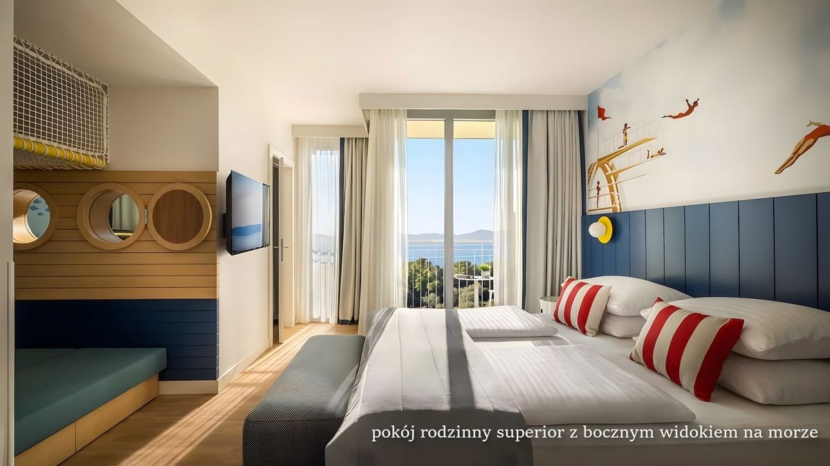 Wakacyjny raj dla rodzin z dziećmi! Tutaj każdy znajdzie coś dla siebie – najmłodsi będą szaleć w basenie z pirackim statkiem lub podczas radosnych animacji, a dorośli mogą skorzystać z chwili wyciszenia w hotelowej strefie wellness. A do tego piękne widoki, z których słynie wybrzeże Dalmacji, piaszczysta plaża i niezrównane chorwackie smakołyki. Zapraszamy do krainy słońca i zabawy!