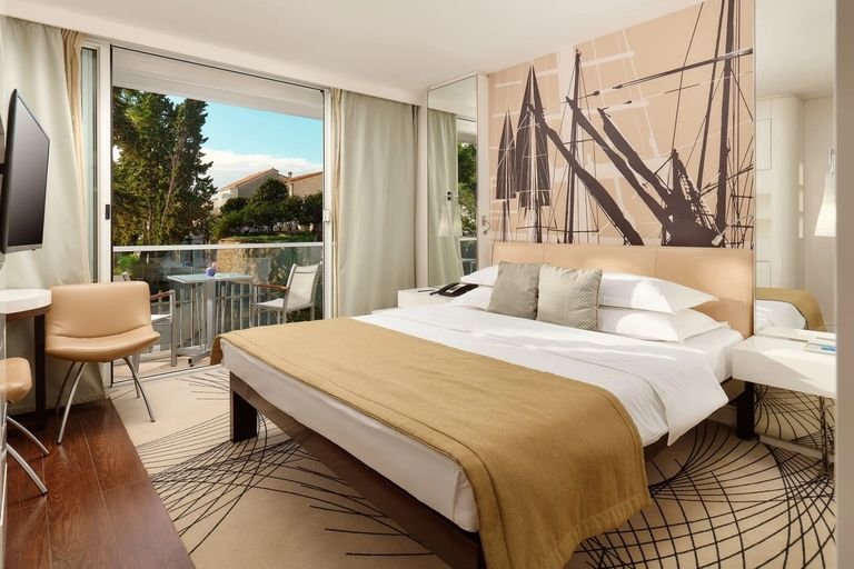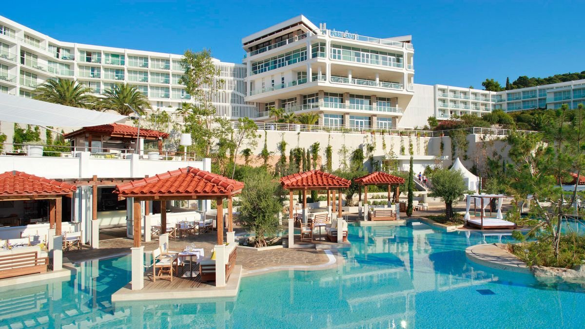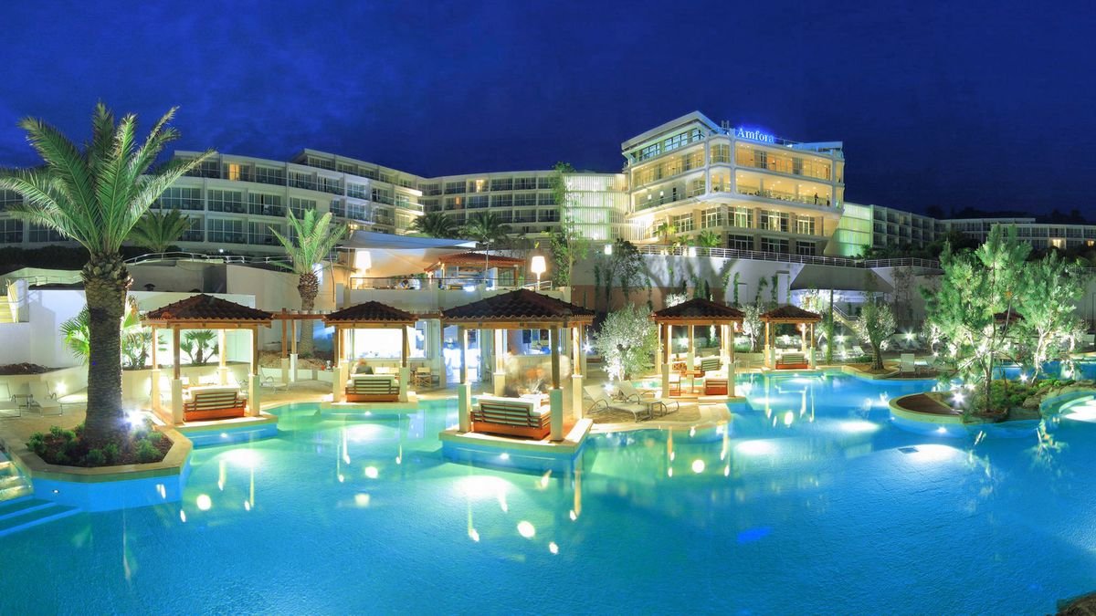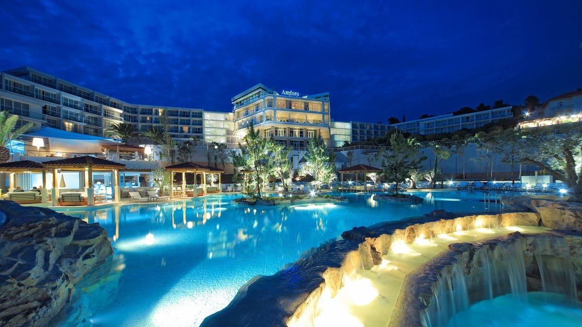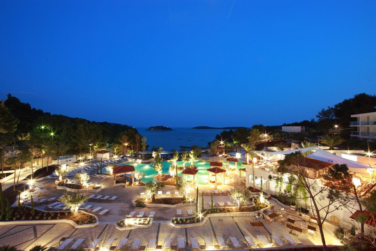 Elegancki i nowoczesny hotel położony tarasowo w spokojnej zatoce, otoczony śródziemnomorską roślinnością i lasem sosnowym. Zaledwie kilka kroków dzieli go od plaży, a jego dumą jest kaskadowy kompleks basenów z wodospadem – doskonałe miejsce na relaks w ciągu dnia. Do dyspozycji Gości jest także kilka barów, w tym swim-up przy basenie oraz 2 restauracje, gdzie spróbujesz dań kuchni śródziemnomorskiej. Podczas pobytu koniecznie wybierz się na spacer do tętniącego życiem centrum miasta Hvar z malowniczą starówką.
