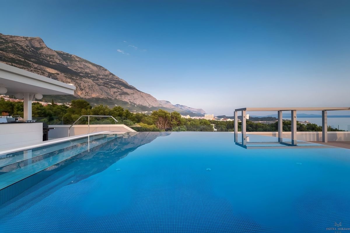 Doskonała propozycja na urlop w Makarskiej, gdzie z dachu roztacza się widok na błękitne Morze Adriatyckie, piękne wyspy i górę Biokovo. Na tarasie możesz wypić poranną kawę, w ciągu dnia popływać w basenie, a wieczorem podziwiać romantyczny zachód słońca. Relaksowi sprzyja też kameralne centrum spa z jacuzzi i sauną, gdzie odpoczniesz i naładujesz baterie. Fanom słuchania szumu fal spodoba się pobliska plaża i krystaliczna czysta woda, która świetnie chłodzi w upalne dni.