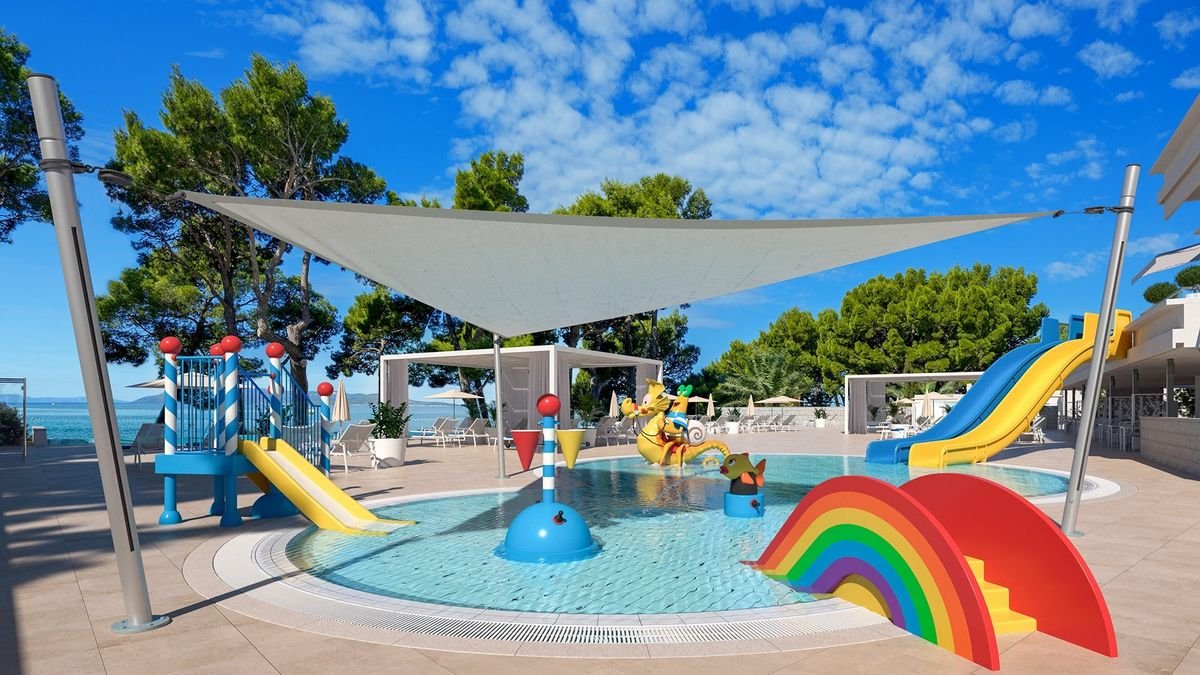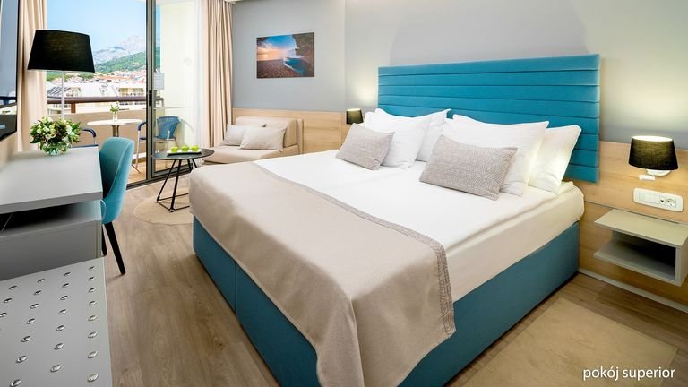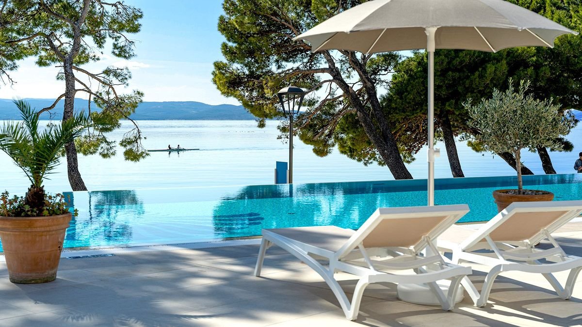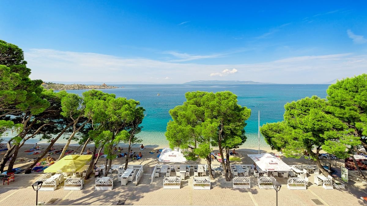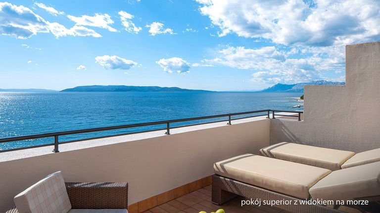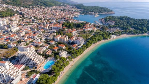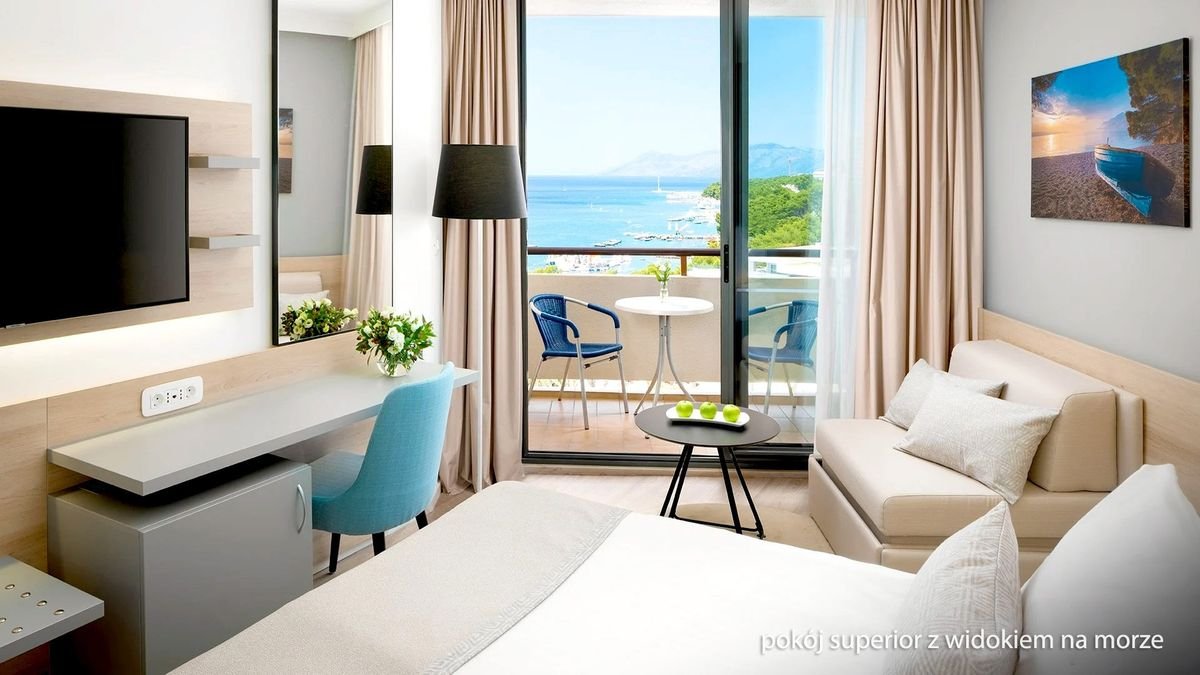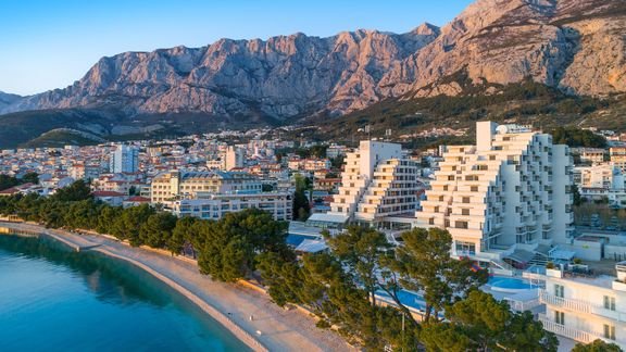 Plaża i promenada na wyciągniecie ręki, piękne baseny, w tym infinity z cudnym widokiem na Adriatyk, rozrywki dla dorosłych i dzieci, a do tego jeszcze świetne położenie w tętniącej wakacyjnym życiem stolicy słynnej Riwiery Makarskiej! Hotel leży przy wspaniałej nadmorskiej promenadzie zacienionej piniami, z mnóstwem barów i sklepików, która prowadzi wprost na Stare Miasto i do portu.