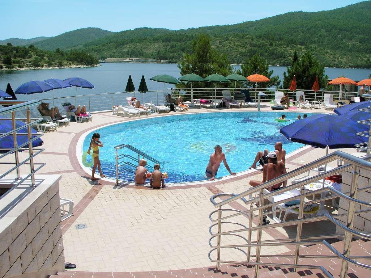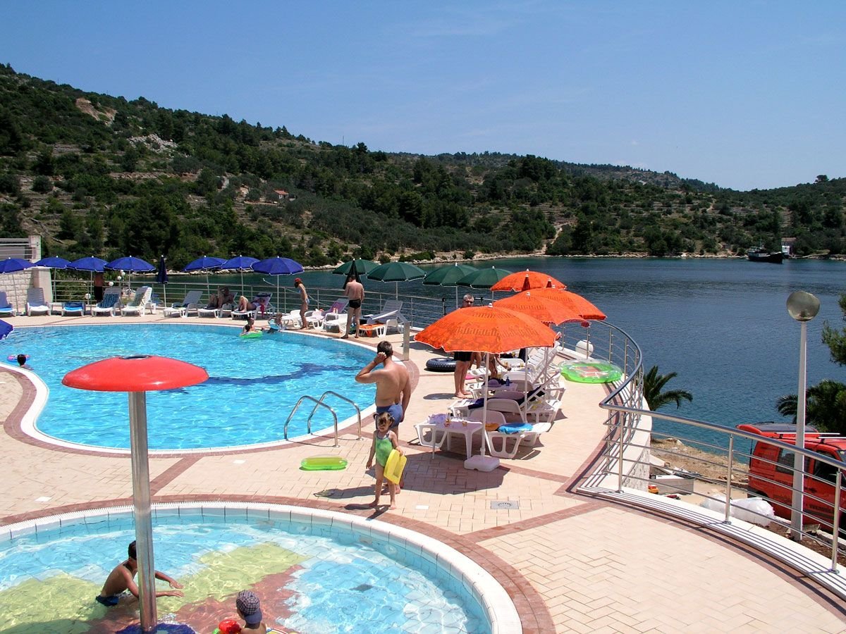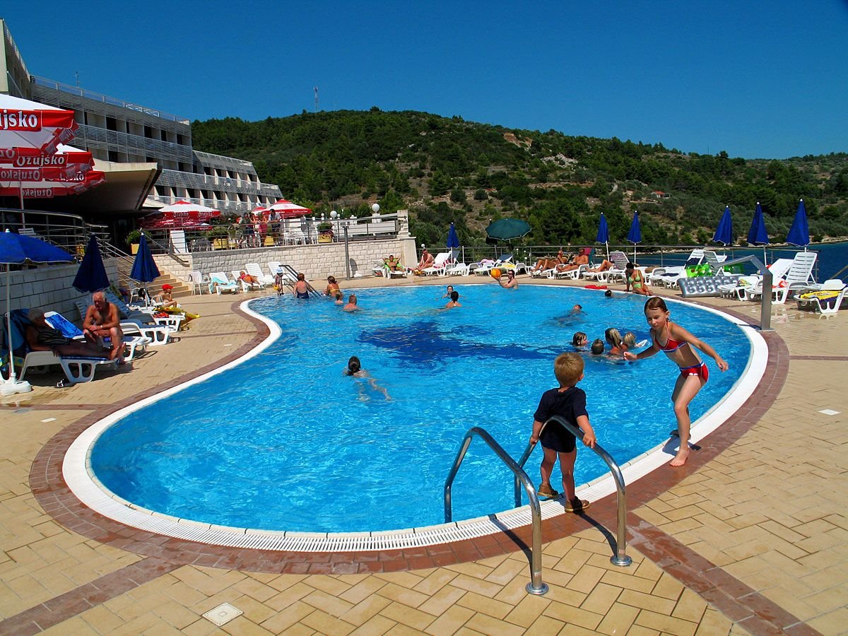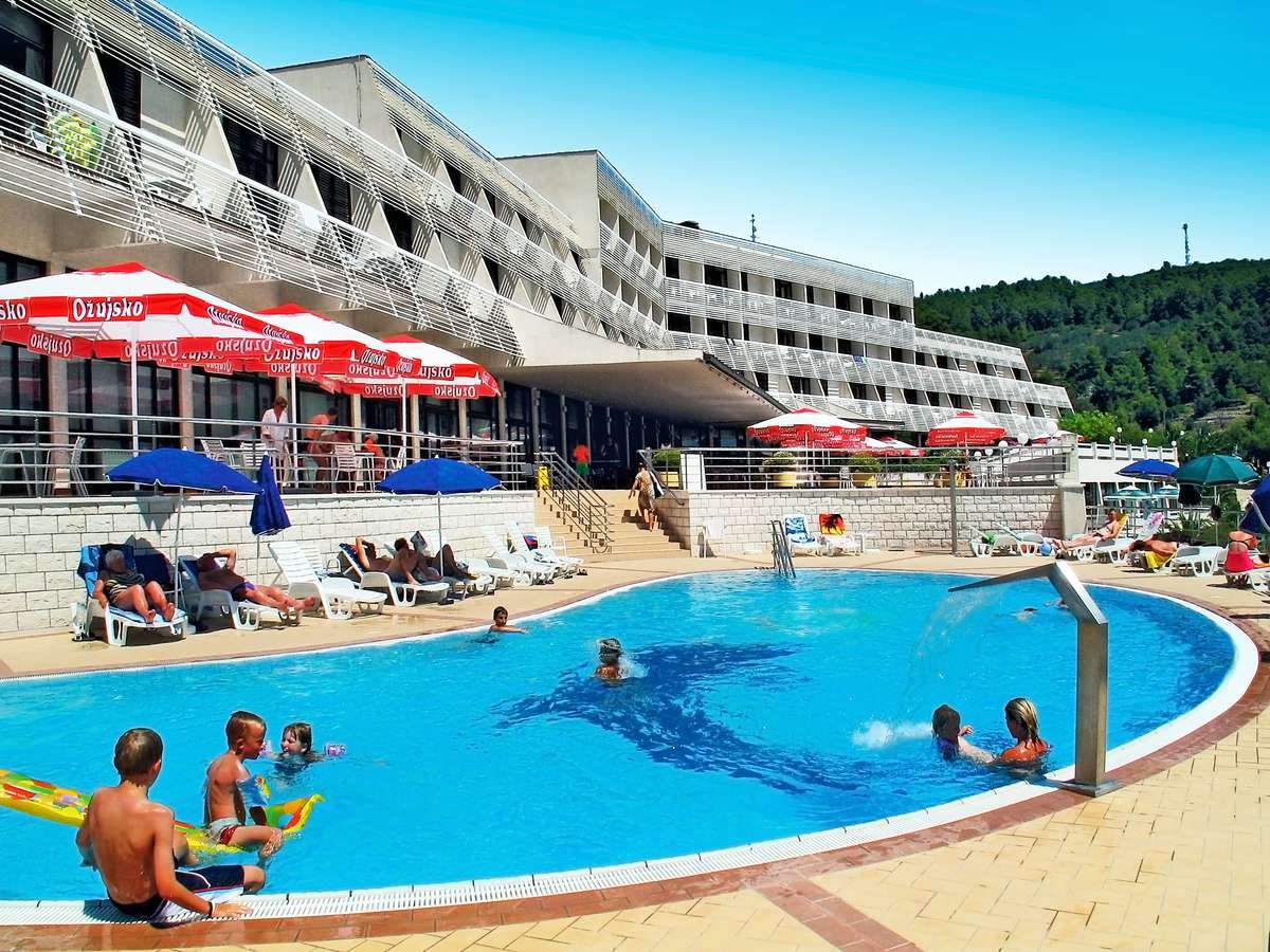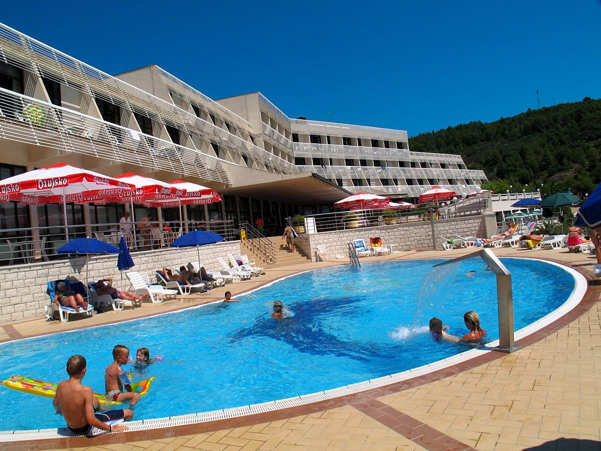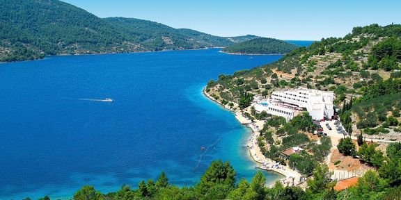 Hotel o prostej architekturze, wspaniale wkomponowany w malownicze wybrzeże zatoki Plitvine. Hotel leży na wzniesieniu, w otoczeniu typowej wyspiarskiej przyrody, z tarasu przy basenie można podziwiać cudny widok na intensywnie błękitny Adriatyk. Do centrum miasteczka Vela Luka można dojść dłuższym spacerem przez las lub wygodnie dopłynąć taksówką wodną. Do dyspozycji Gości w okolicy są urocze, maleńkie, skaliste dzikie plaże, czekające na odkrycie. Sprawdzony serwis, zadbane pokoje i wakacyjna atmosfera - wszystko zdecydowanie zasługuje na trzy gwiazdki.