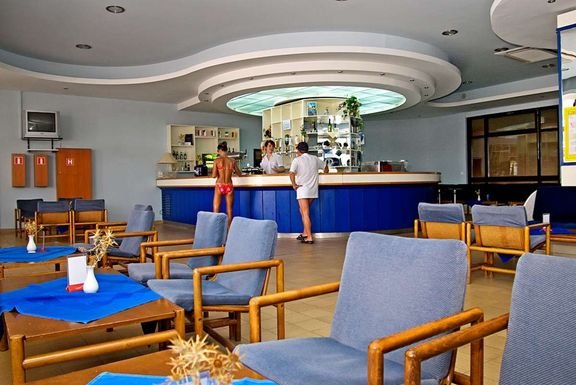 trzygwiazdkowy, zadbany, zbudowany w 1986 r., odnowiony w 2008 r., 128 pokoi, 1 budynek, 3 piętra, 2 windy, przestronny, elegancki hol, całodobowa recepcja, restauracja - dania w formie bufetu, obsługa kelnerska, kuchnia lokalna i śródziemnomorska, foteliki dla dzieci (ograniczona ilość); bar w lobby, kantor, taras z widokiem na morze; za opłatą: internet bezprzewodowy, punkt internetowy w lobby (ok. 5 EUR/godz.), sejf w recepcji (ok. 5 EUR/dzień), pralnia; występują różnice poziomów - niepolecany osobom z ograniczeniami ruchowymi; akceptowane karty kredytowe: Visa, MasterCard, American Express, Diners Club.