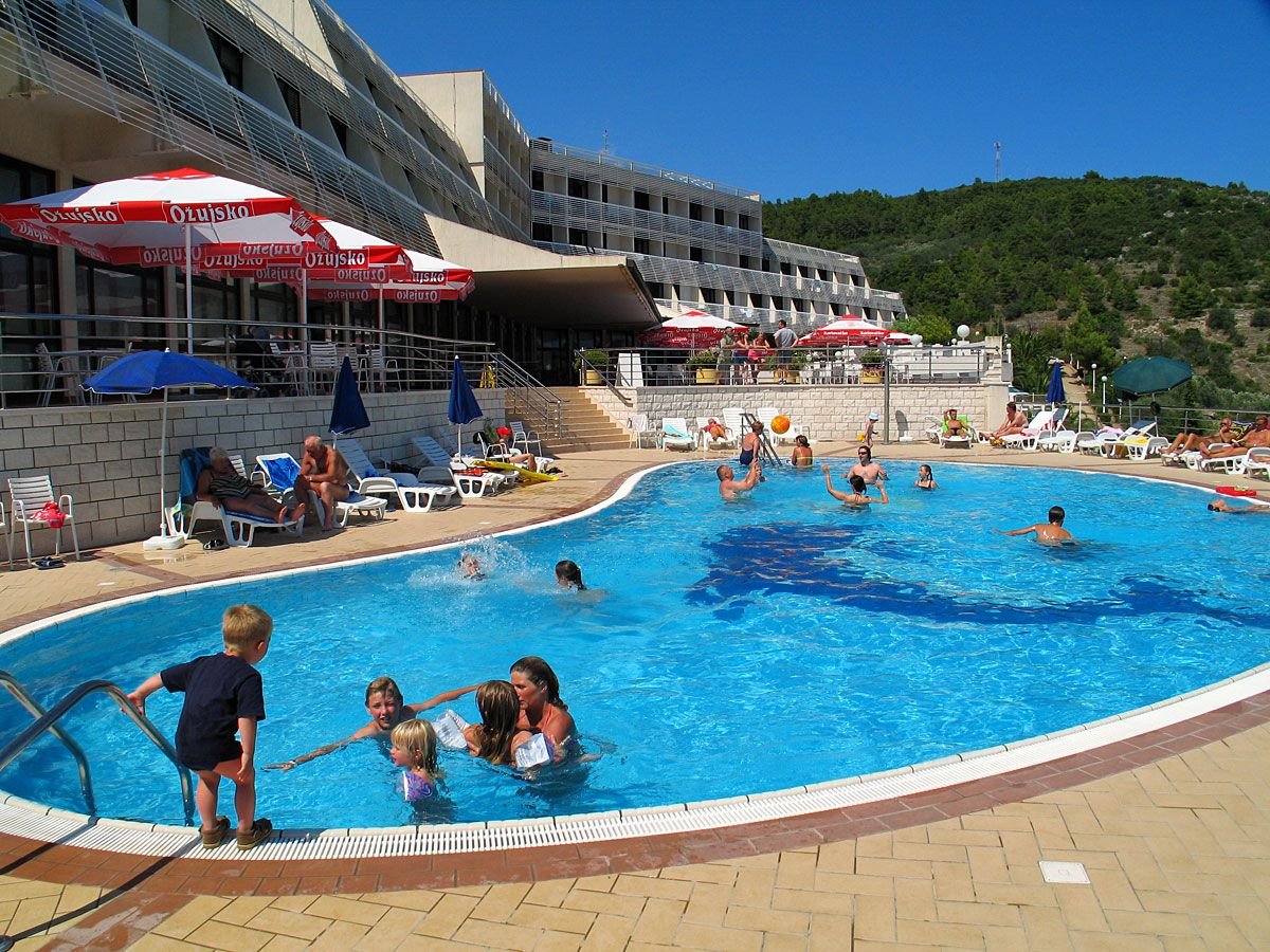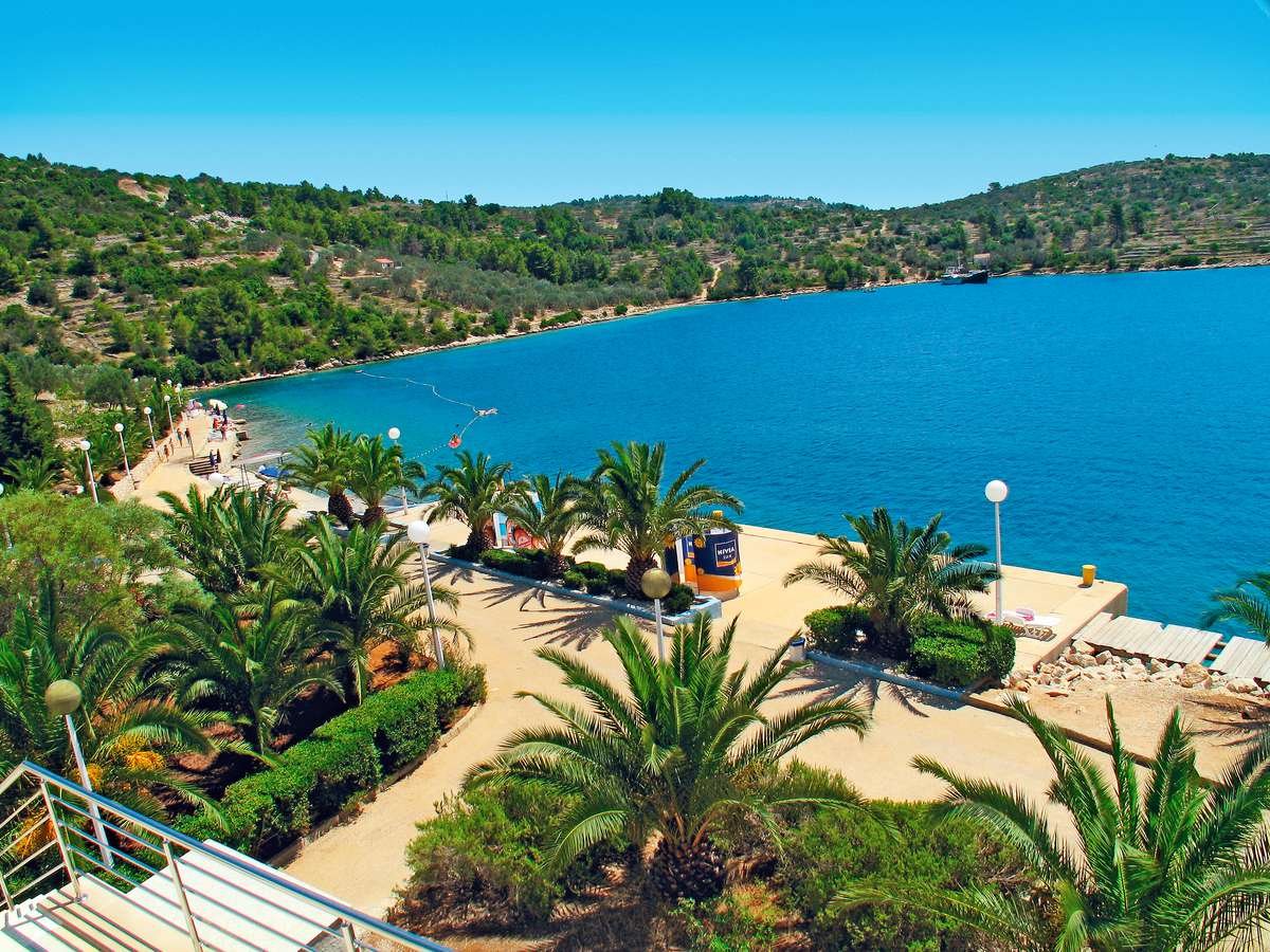 na wyspie Korčula, ok. 3 km od centrum miasteczka VELA LUKA z barami, restauracjami i sklepami, na nadmorskim klifie, w niedalekim sąsiedztwie hotelu Posejdon; ok. 190 km od portu lotniczego w Dubrowniku, transfer autokarem do miejscowości Orebić na płw. Pelješac, następnie przeprawa promem do miejscowości Korčula (ok. 20 min), kolejno przejazd z portu do hotelu (ok. 42 km); kilka razy dziennie taksówka wodna do Vela Luka (za opłatą).